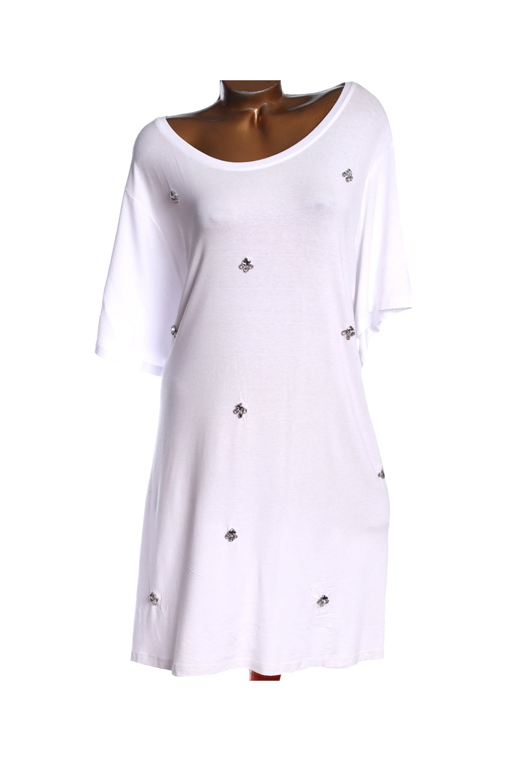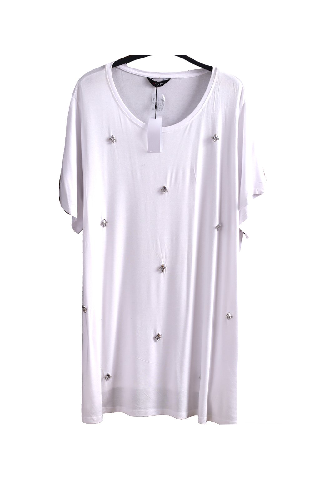 Dámská bílá dlouhá halenka /šaty zdobená kameny / YOURS - XXXXL+ (58/60) UK 30/32 / ANGLIE