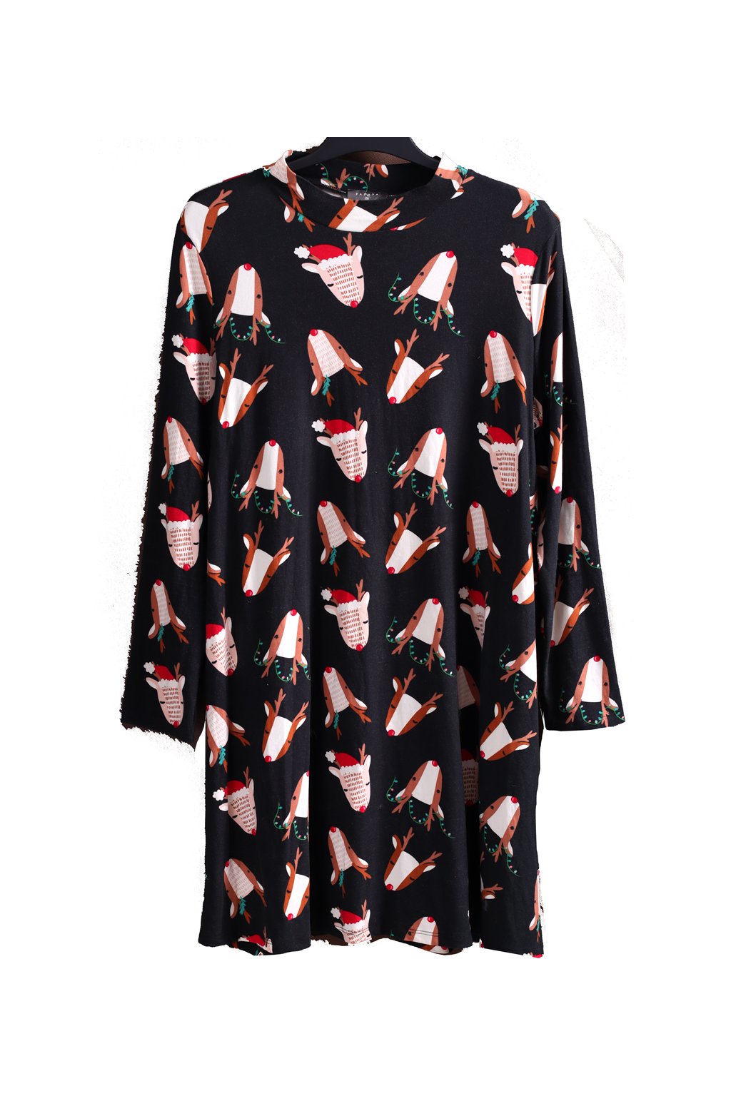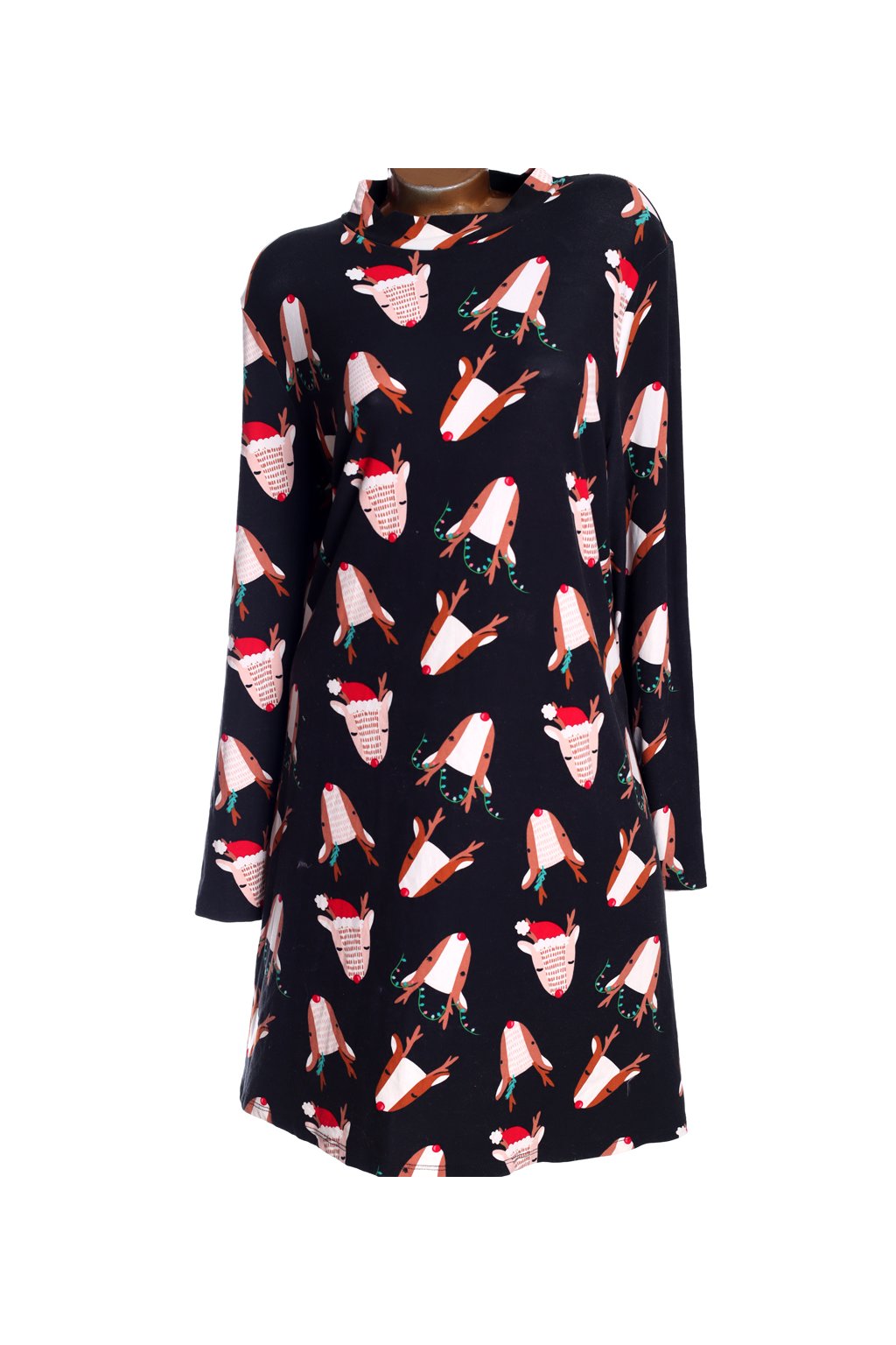 Dámské, elastické, domácí šaty se vzorem sobíků / XXXL (48) / ANGLIE 20