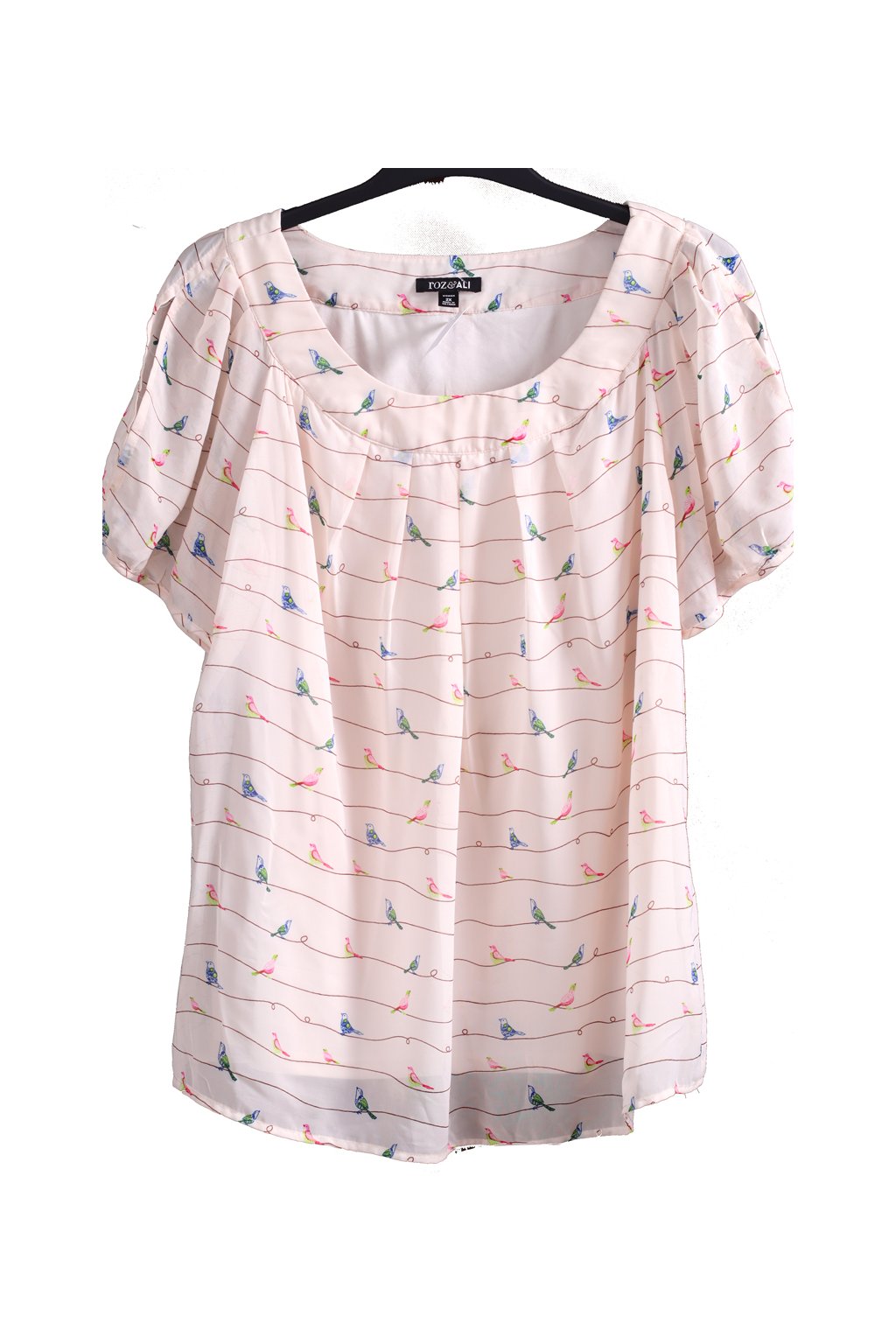 Dámská růžovová halenka se vzorem ptáčků / Roz§Ali / XXL (44) / ANGLIE 16