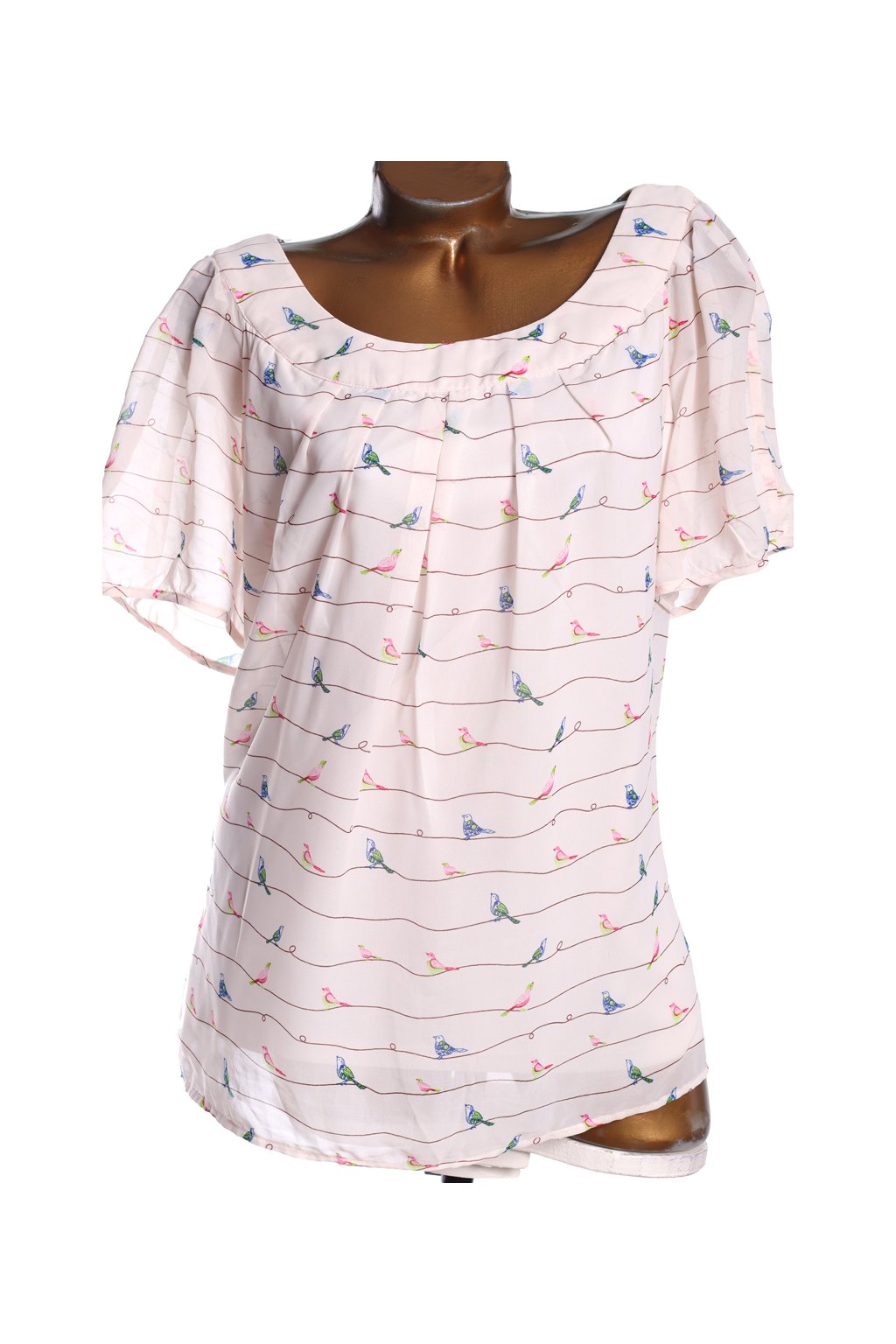 Dámská růžovová halenka se vzorem ptáčků / Roz§Ali / XXL (42/44) / ANGLIE 16