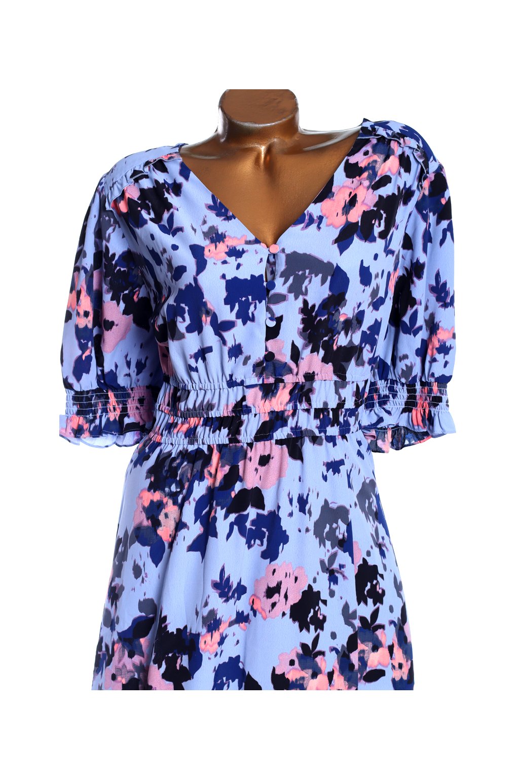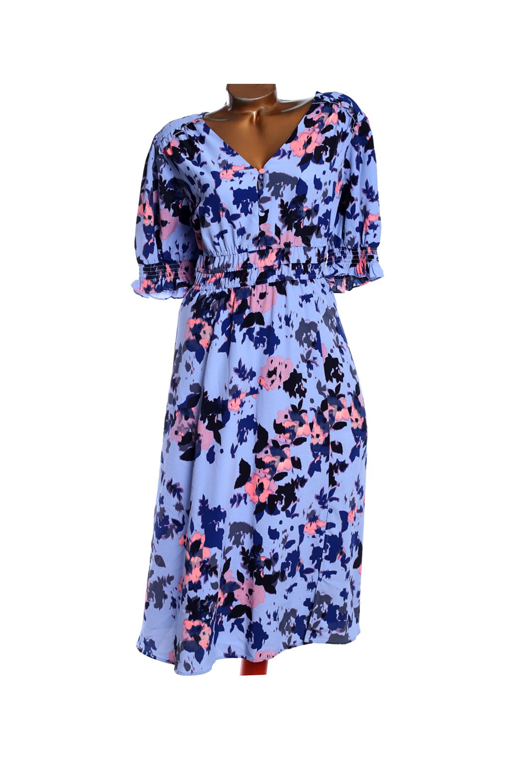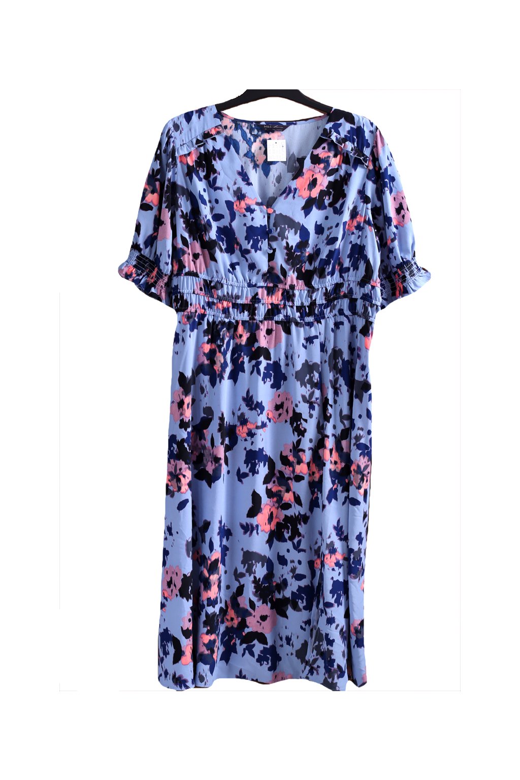 Dámské modré značkové šaty s růžovými květy /M§S/ XXXL (50) / UK 22 ANGLIE