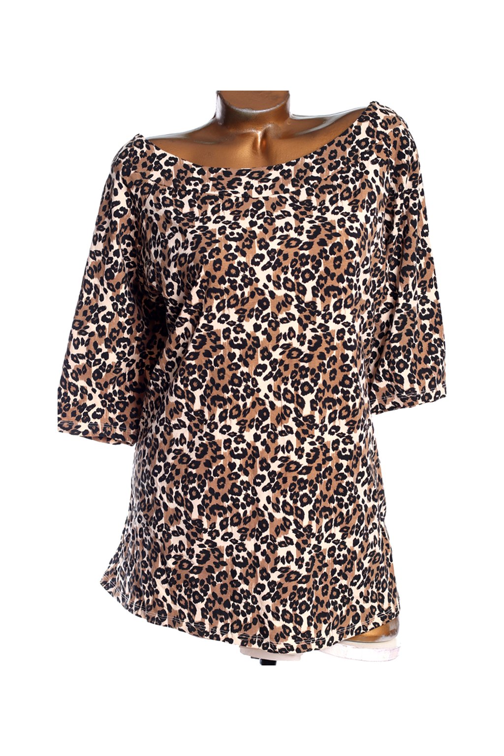Dámská elastická, hnědo-béžovo-černá halenka s leopardím vzorem / Label Be / XXXXL (54) / UK 26 / ANGLIE