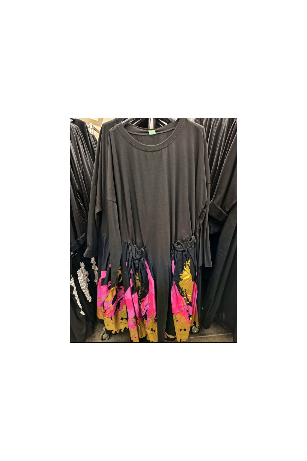 Černé podzimni elastické šaty(bavlna, elastan) - velké kapsy a různé barvy na výběr - prsa v klidu 120 cm, po natažení 140 cm, boky volné, délka 102 cm, vel. cca. 44/46/48+/ Italie