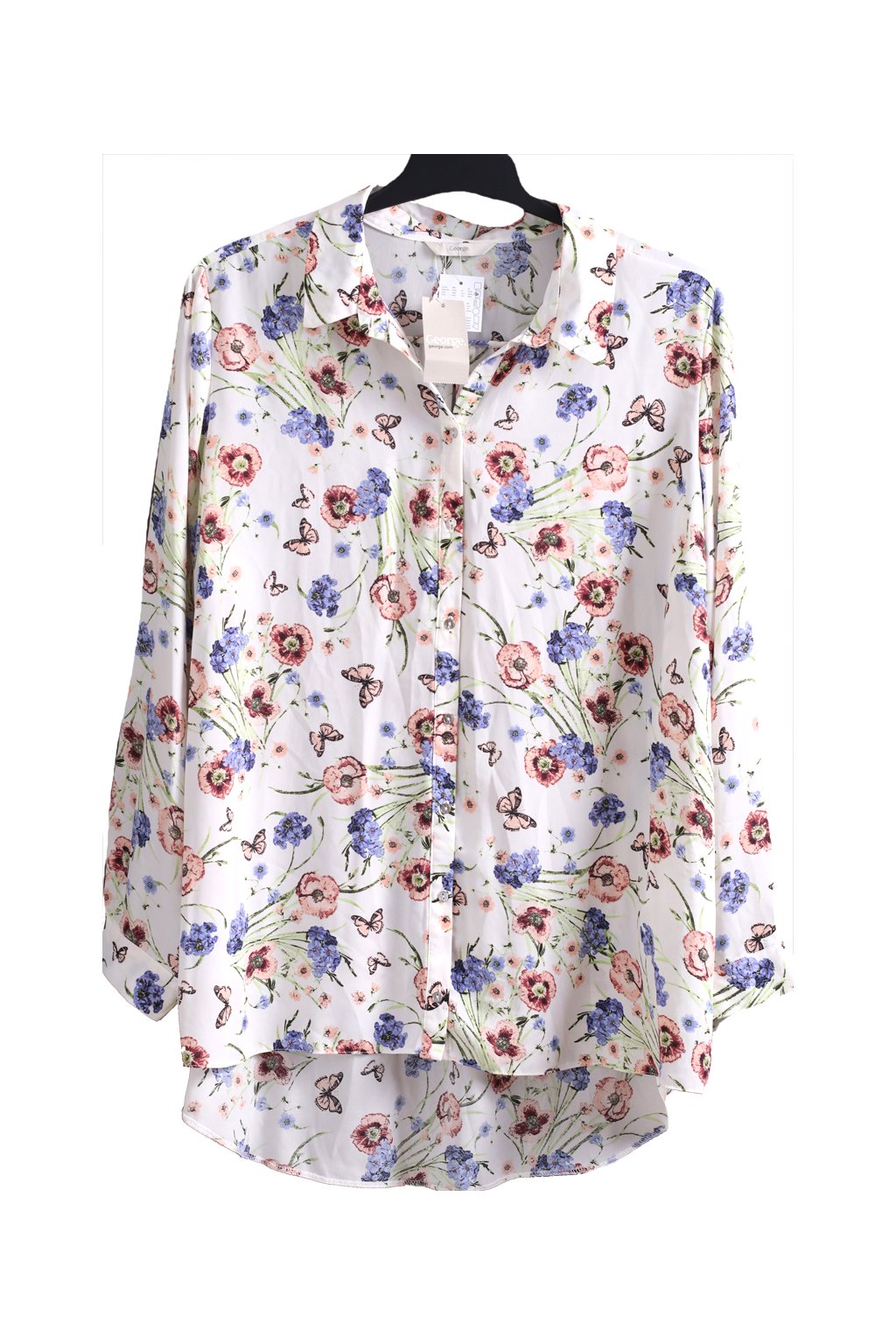 Dámská bílá, příjemná, lehká halenka se vzorem květin a motýlů / George / XXXL (50) / UK 22 / ANGLIE