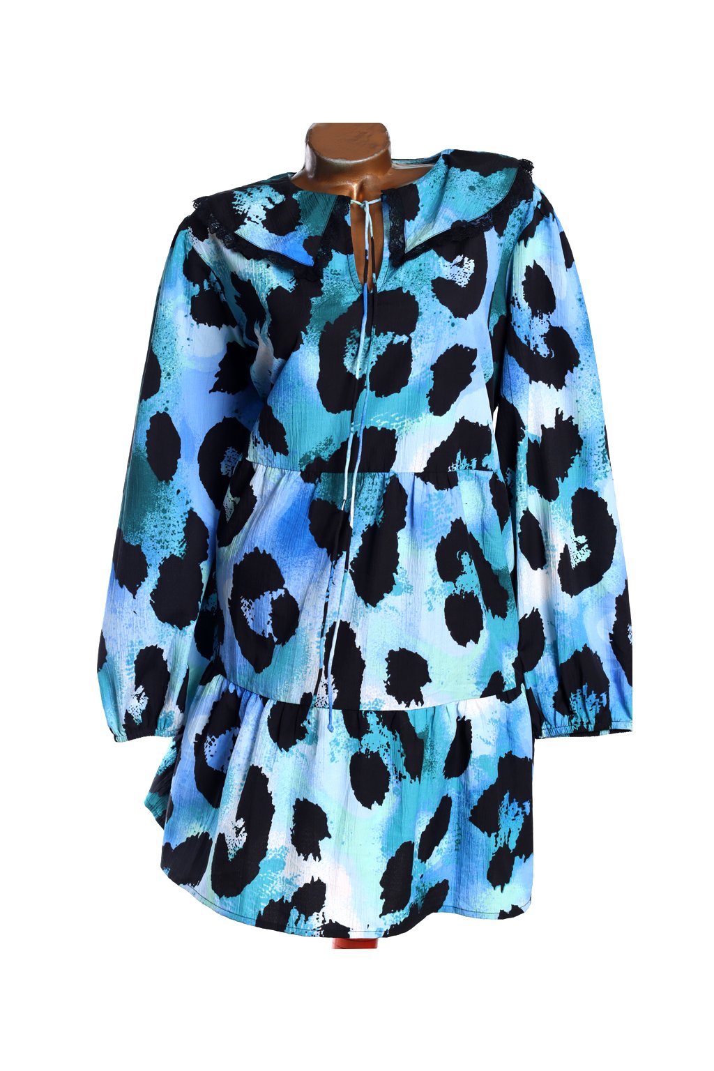 Dámká černé šaty s modrými vzory / STUDIO 19 / XXXL (50/52) / UK 22/24 / ANGLIE