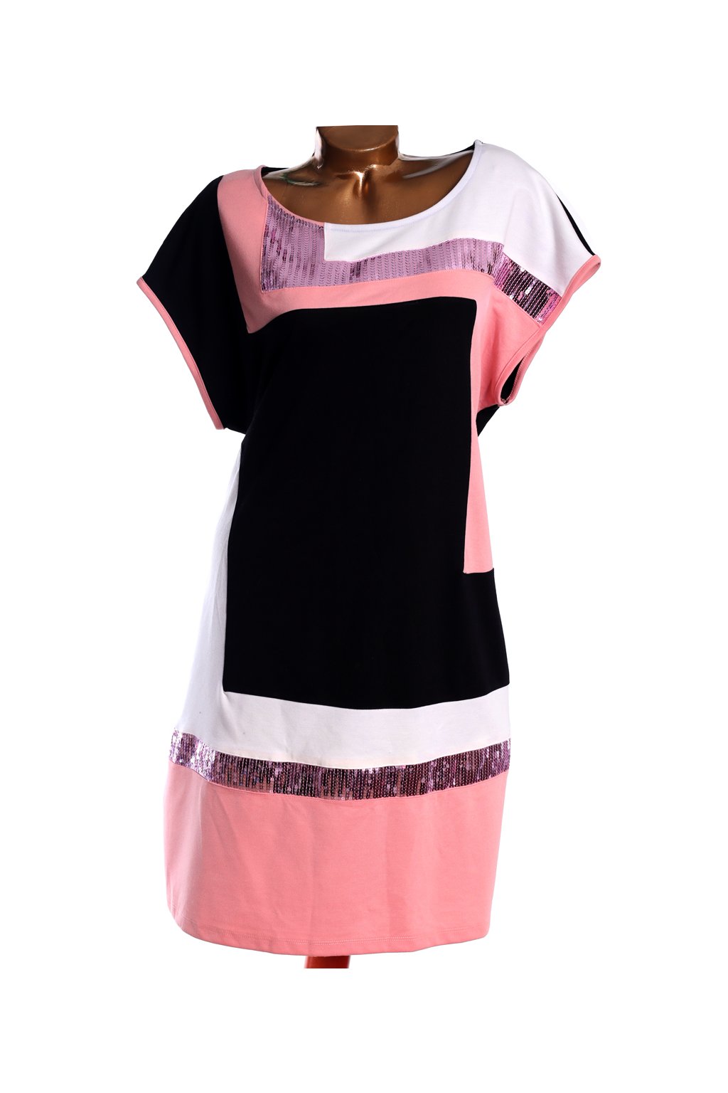 Dámká černé šaty s růžovými a bílými vzory a flitry / XXXL (48/50) / UK 20/22 / ANGLIE