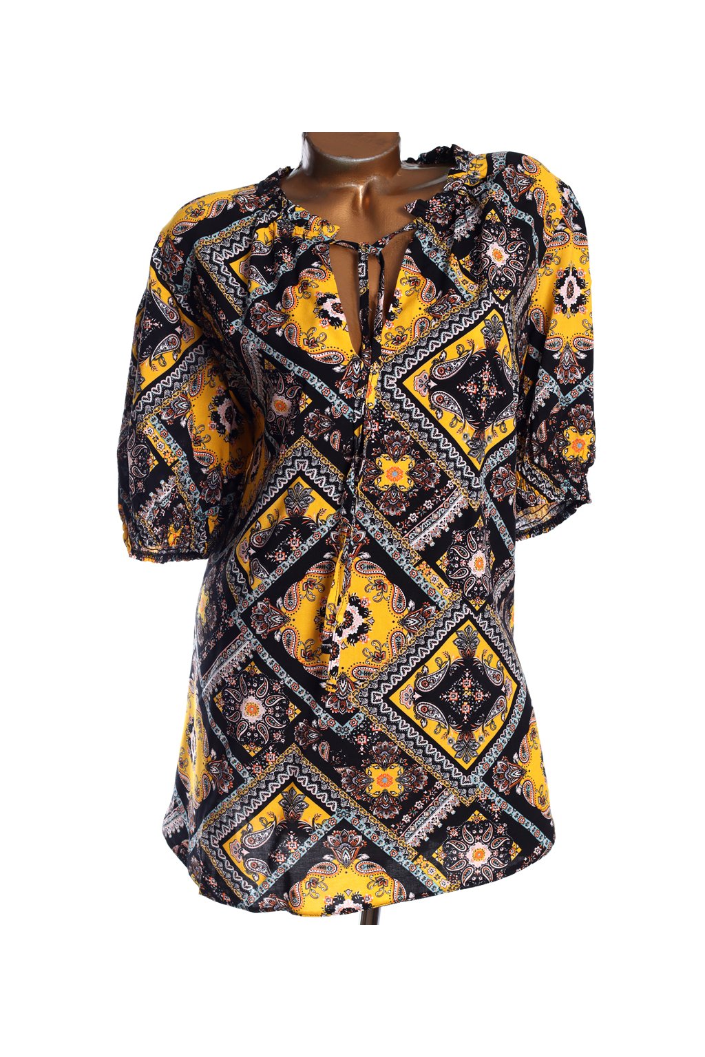 Dámská zančková černá halenka s barevným vzorem / Yours / XXXXL (50/52) / UK 22/24 / ANGLIE