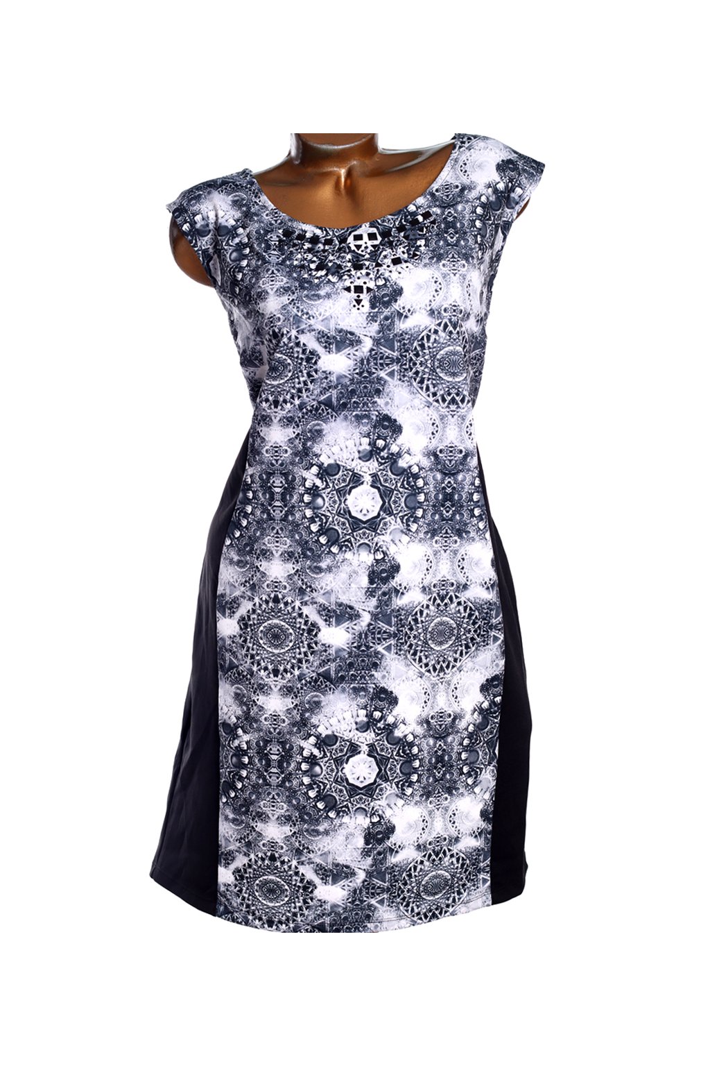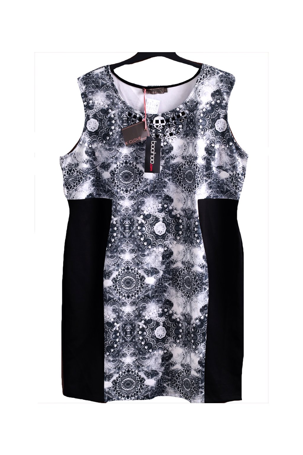 Dámká černo-bílé vzorované elastické šaty s kamínky / PINK CLOVE / XXXL (50) / UK 22 / ANGLIE