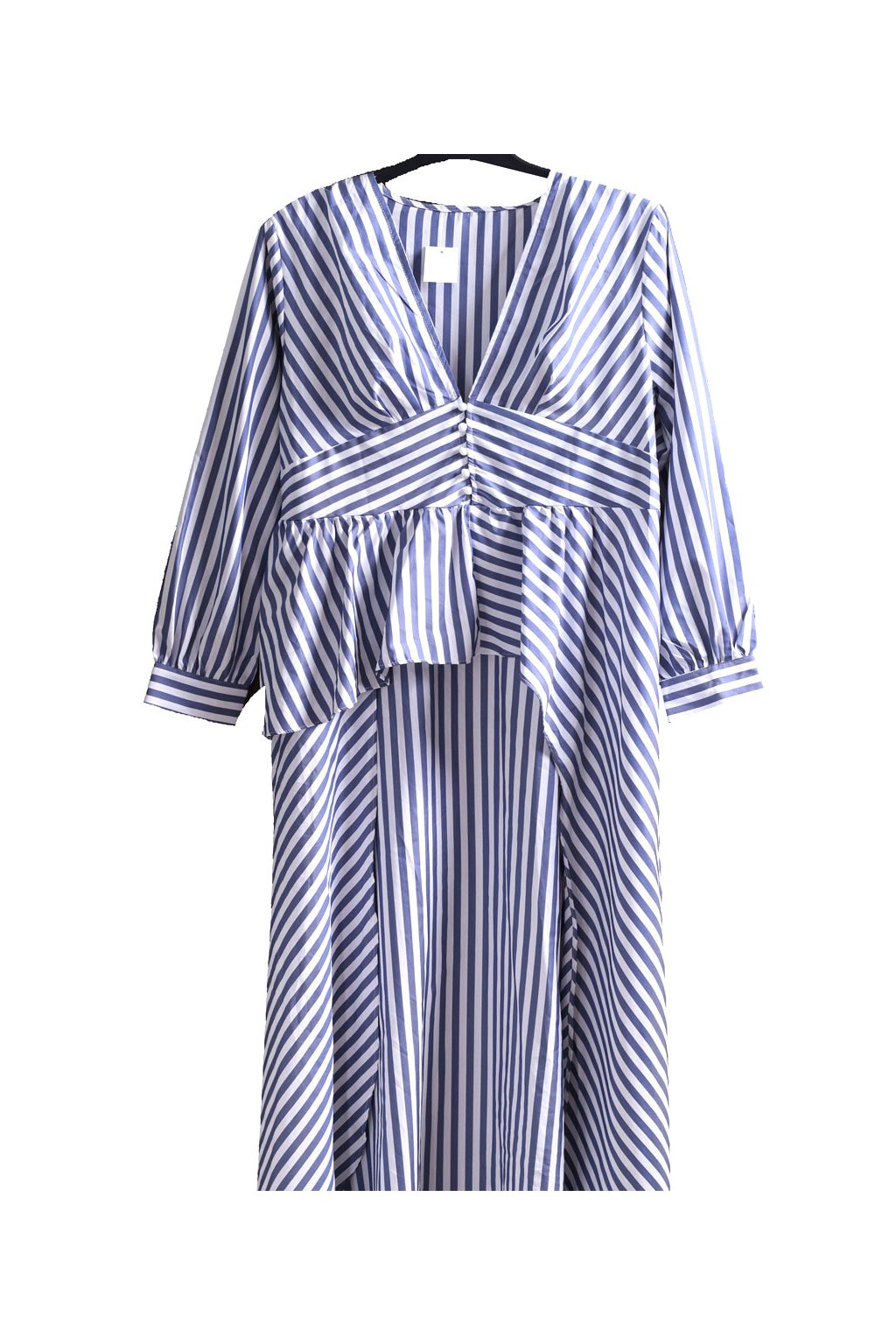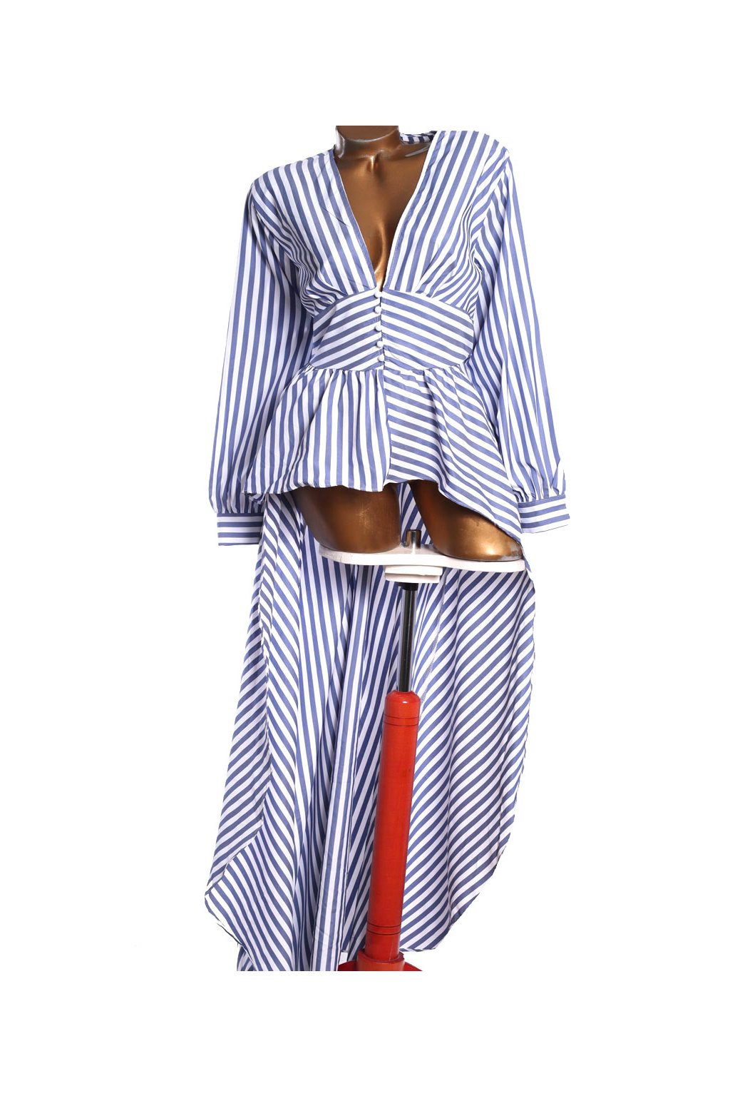 Dámké bílo-modré pruhované extravagantní šaty/kabátek / XXL (44/46) / UK 16-18 / ANGLIE