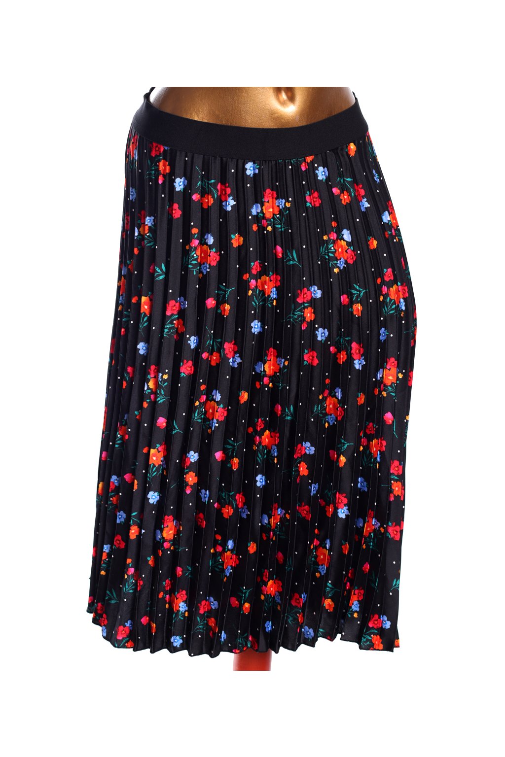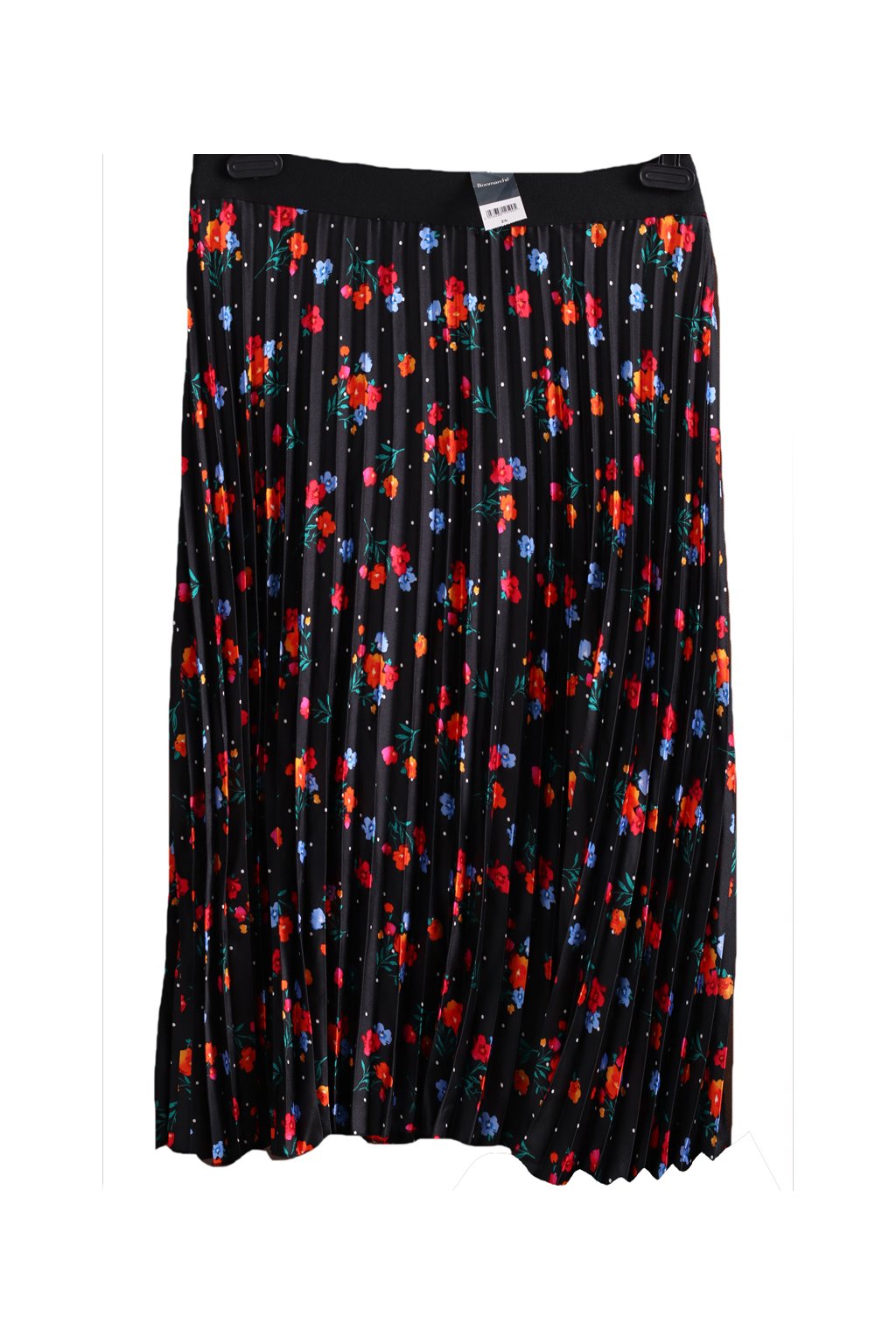 Dámká plisovaná, černá sukně se vzorem kytek a bílých puntíků / Bonmarché / XXXXL (52) / UK 24 / ANGLIE