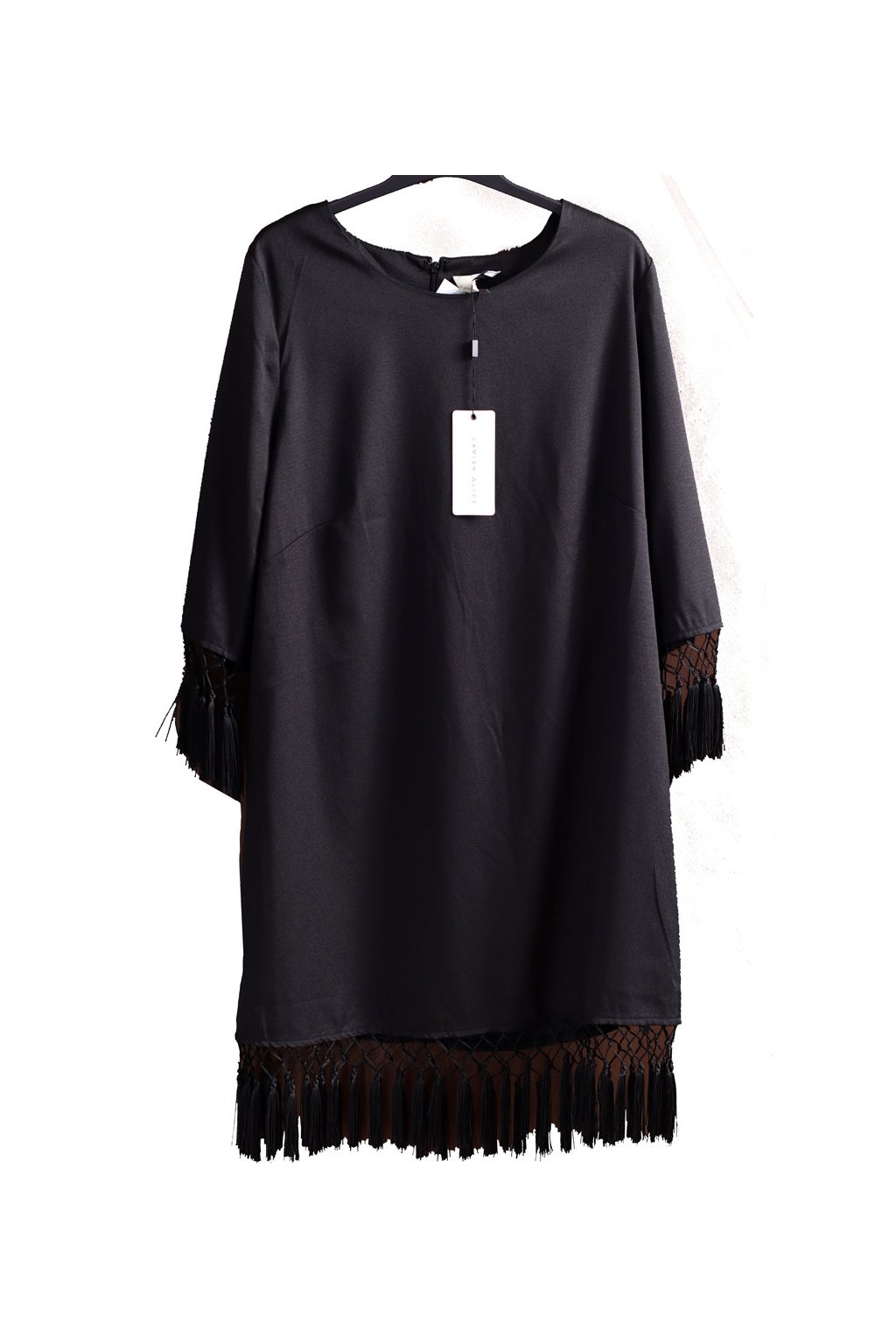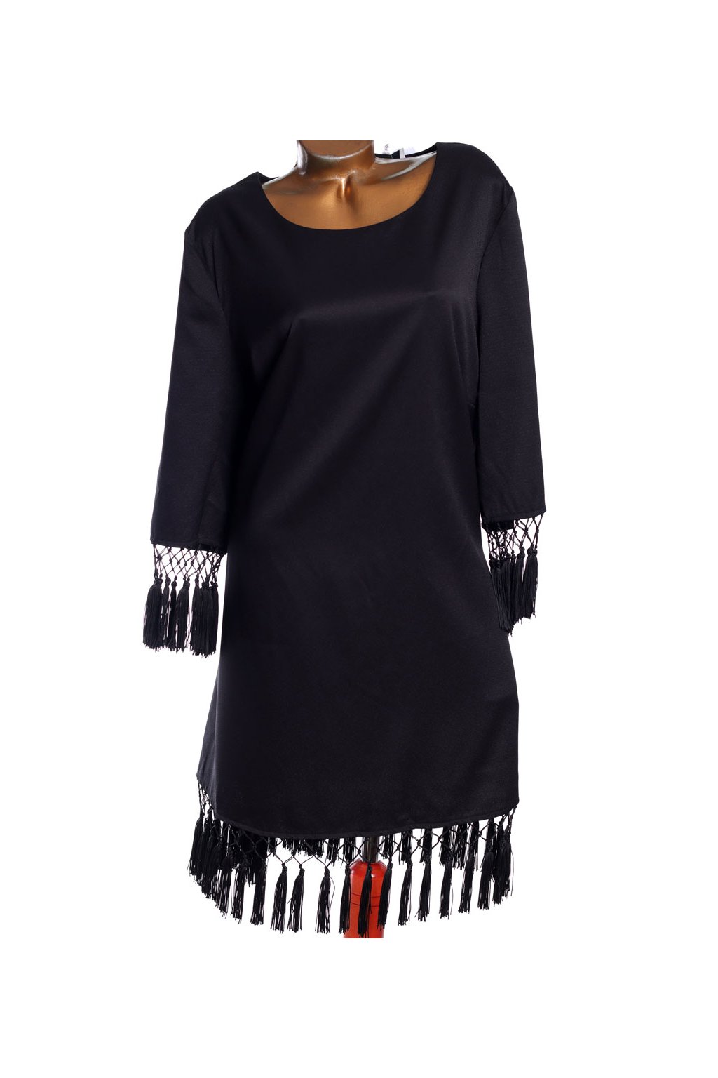 Dámské značkové černé elastické šaty s ozodnými střapci / LAISH ALICE / XXXXL (48/50) / UK 20/22 / ANGLIE
