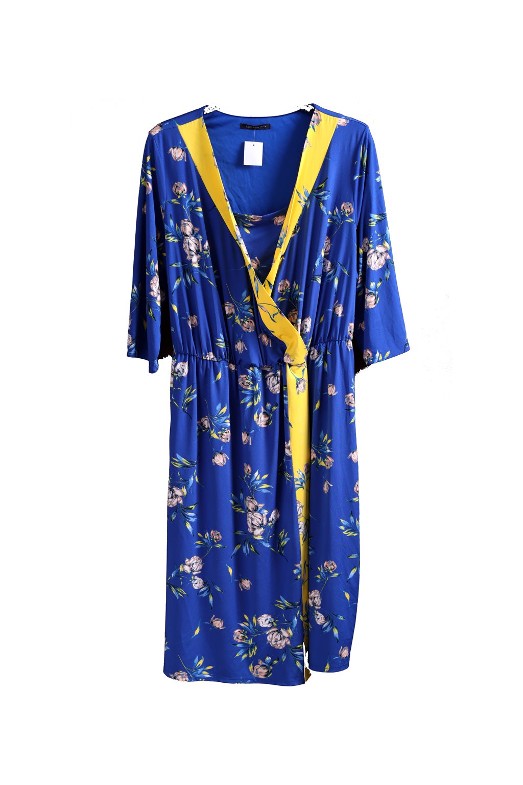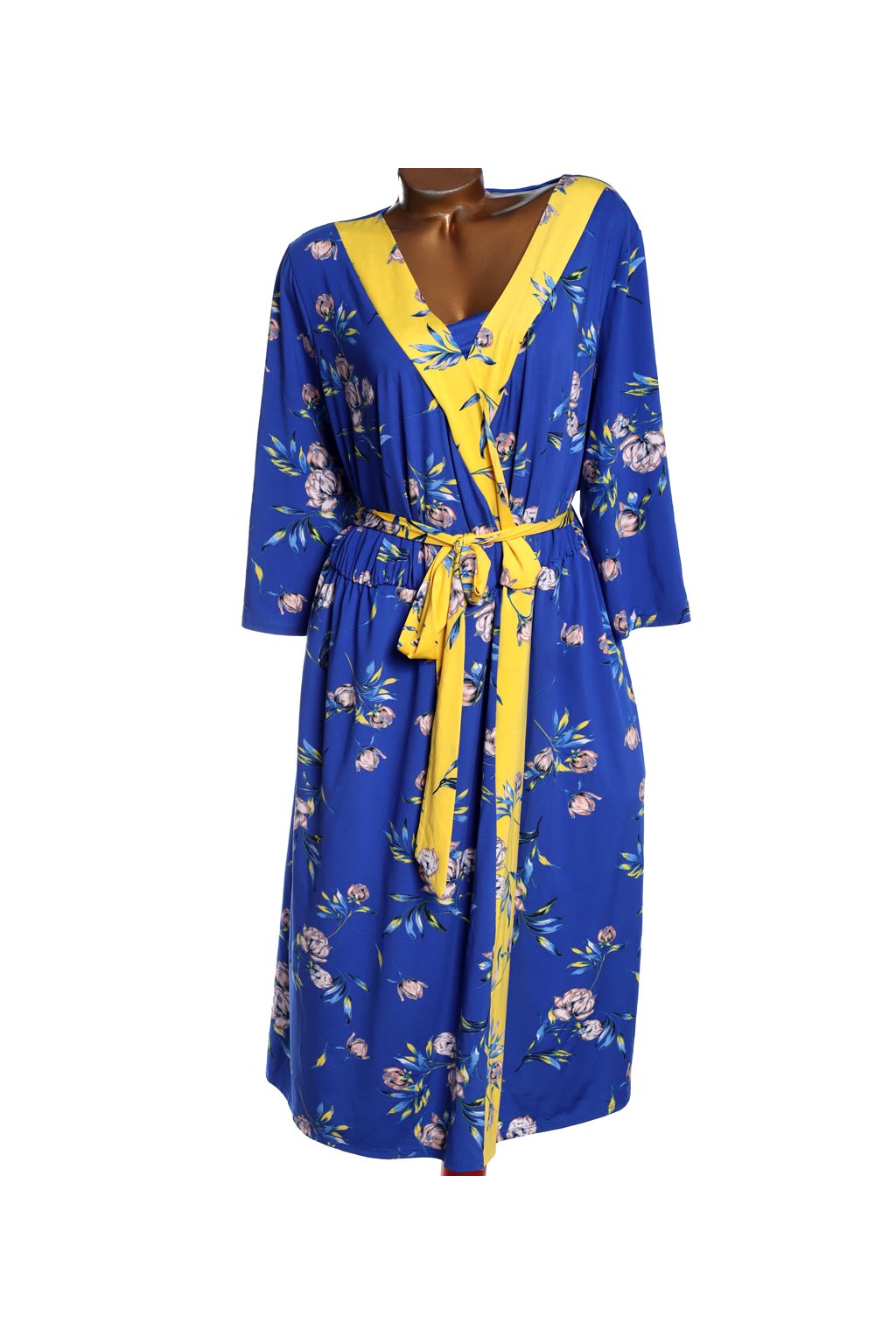 Dámské elastické, modro-žluté šaty s květy / M§S / XXXXL (54) / UK 26 / ANGLIE
