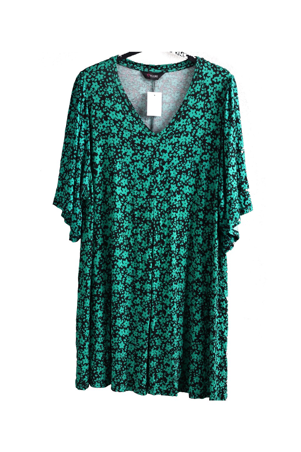 Dámké černé šaty/tunika se zelenými květy / YOURS / XXXXL (50/52) / UK 22/24 / ANGLIE