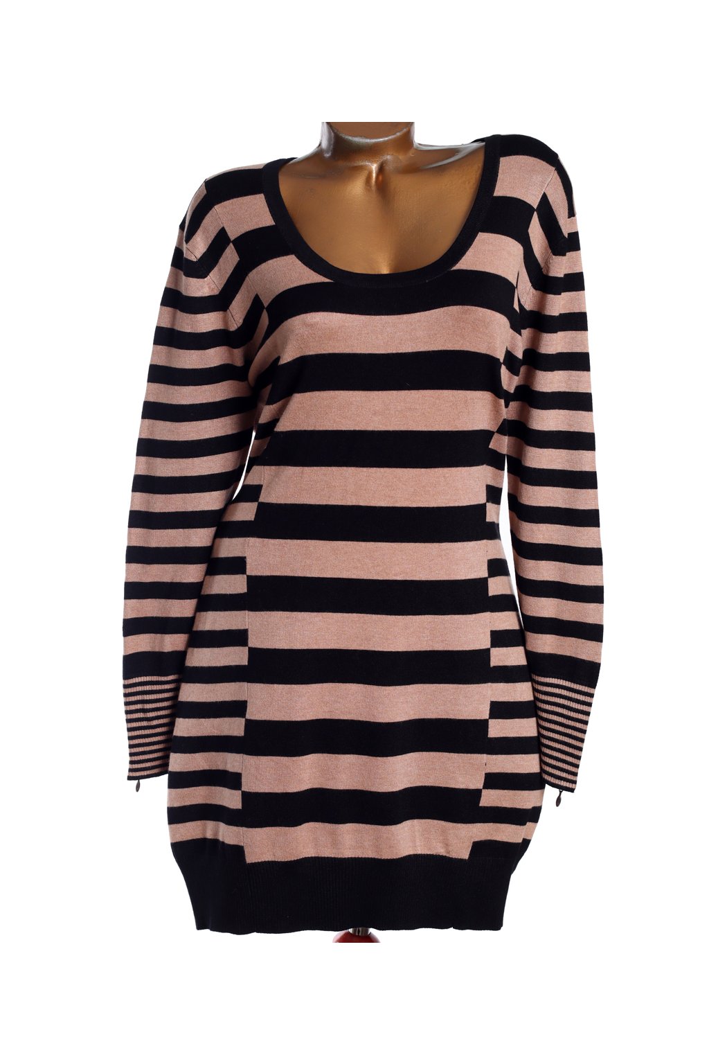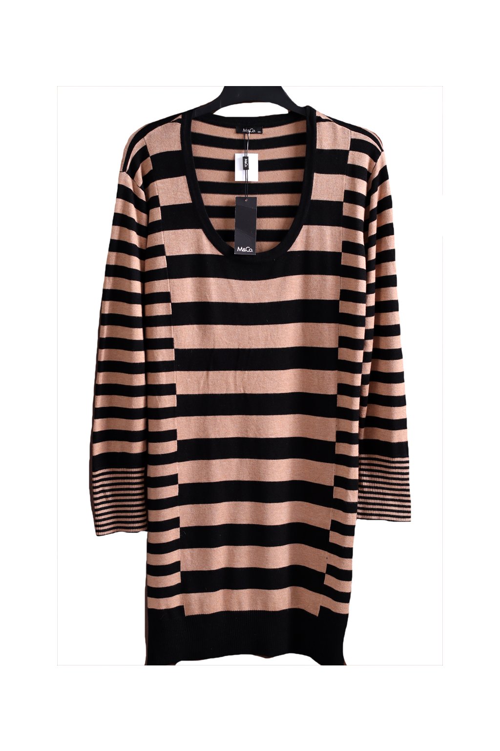 Dámské černo-hnědé pruhované svetrové šaty /Mco / XXL (46) / UK 18 / ANGLIE