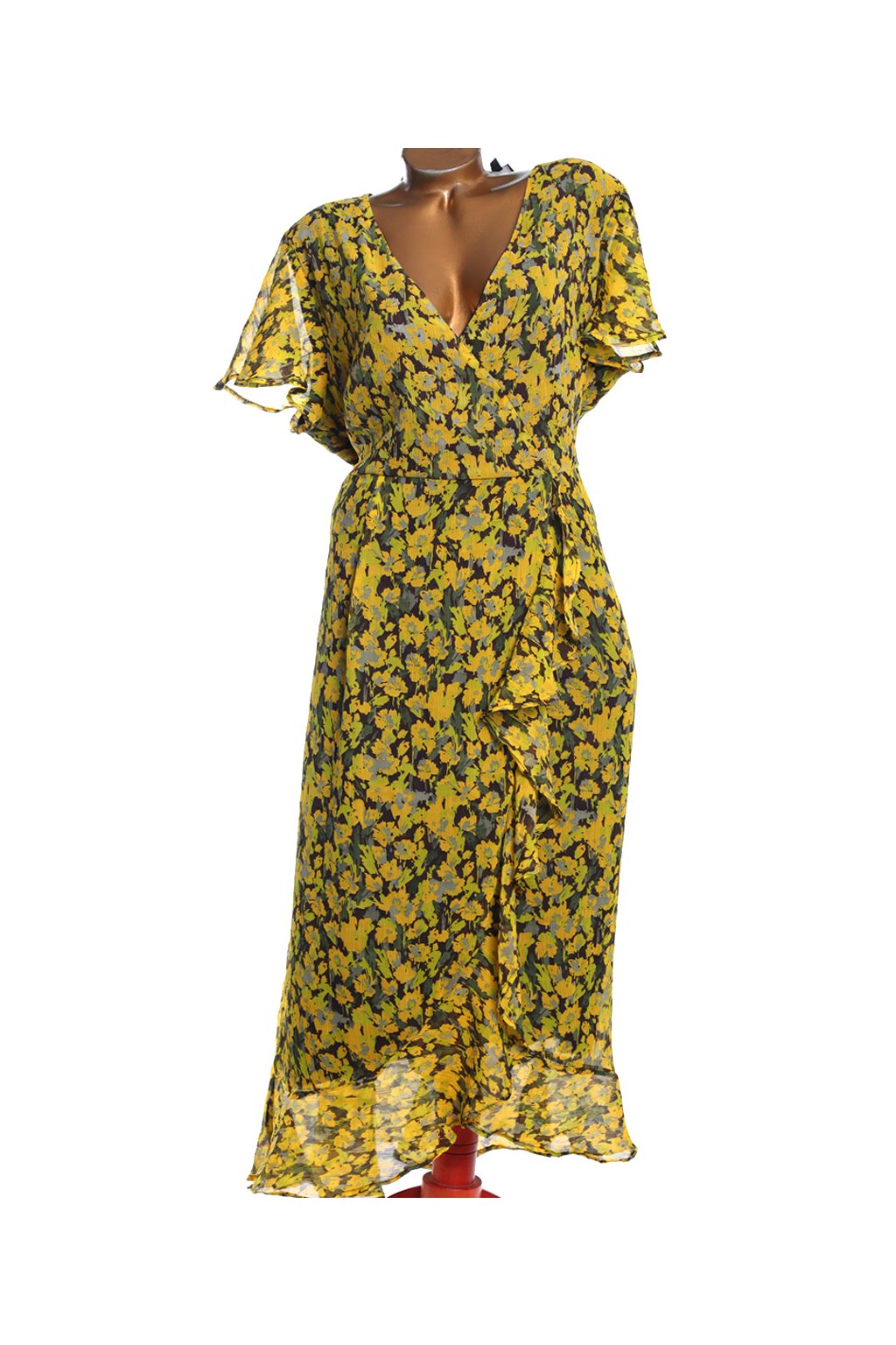 Dámké černo-žluté květované luxusní značkové šaty / LOVED ROBE/ (52) / UK 24 / ANGLIE
