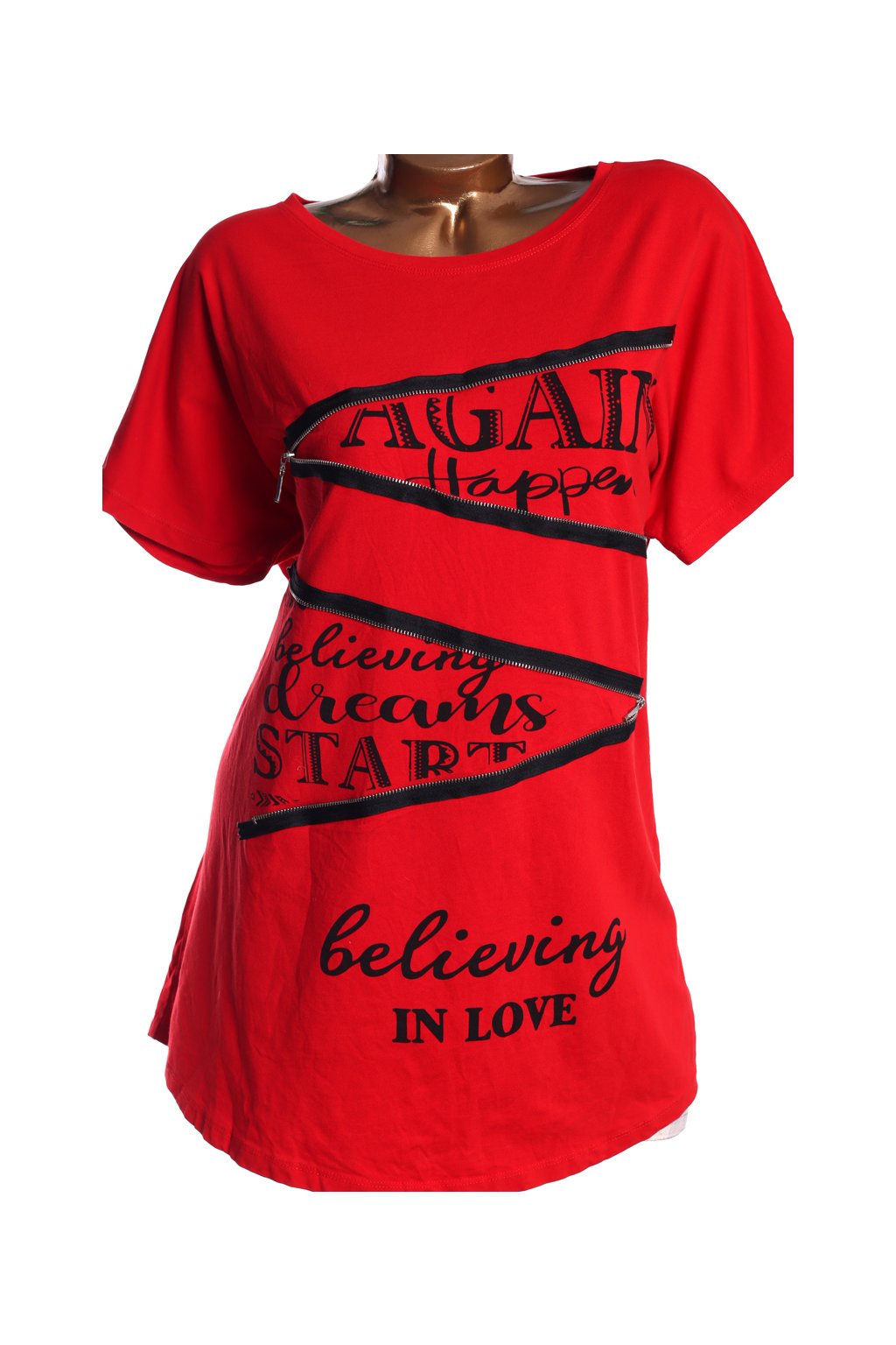 Dámké červené triko s nápisy a zipem / SERAJ / XXXL (48/50) / UK 20/22 / ANGLIE