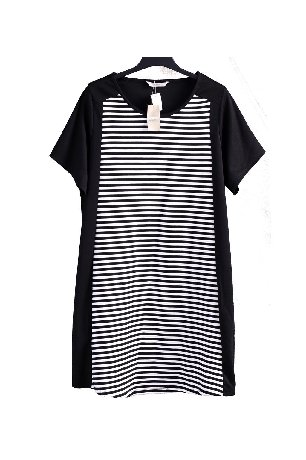 Dámské elastické černé šaty s bílými proužky - teplejší materiál / GEORGE / XXXXL (50/52) / UK 22/24 / ANGLIE
