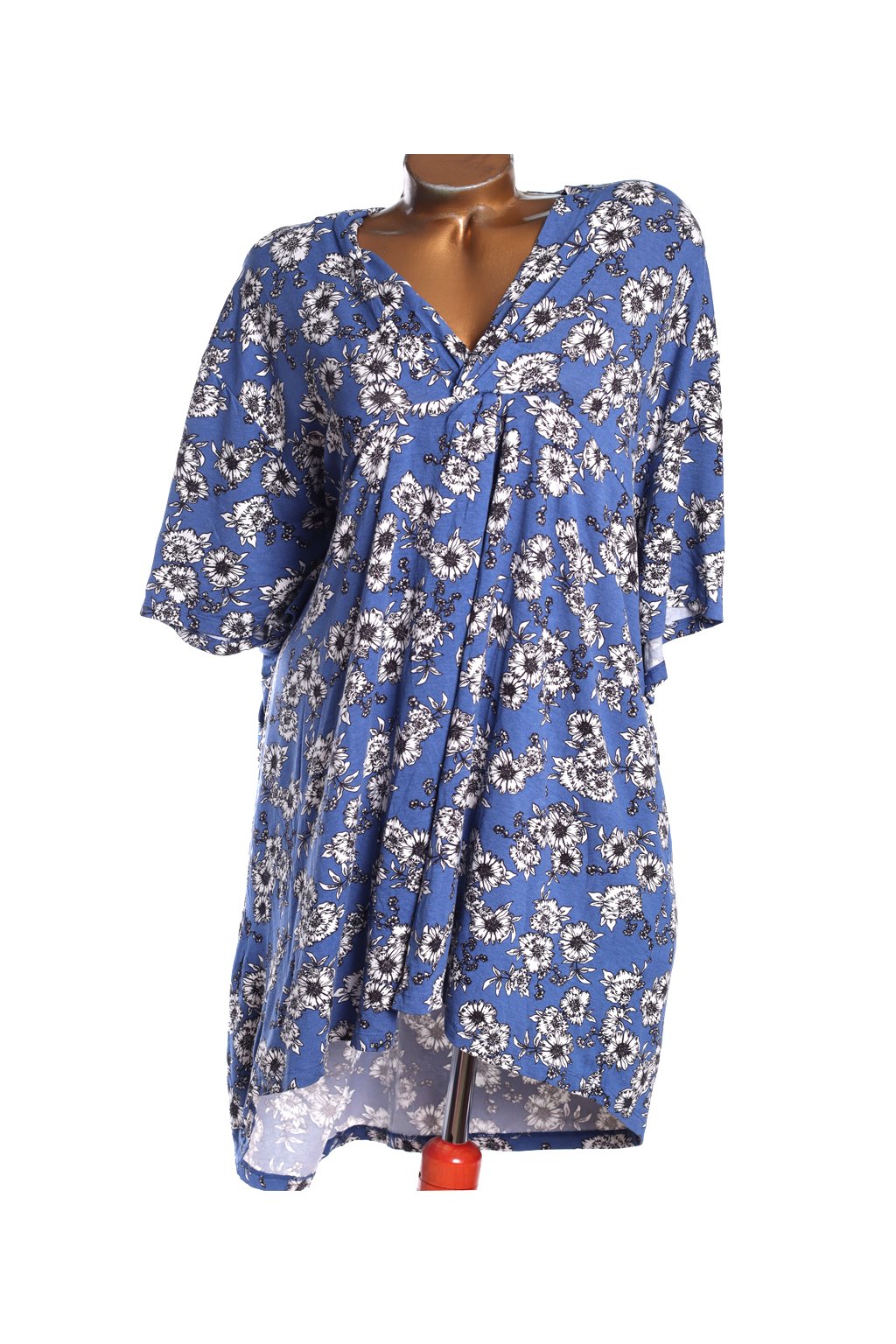 Dámské modré šaty s bílo-černými květy / Yours / XXXL+ (58-60) / UK 30/32 / ANGLIE