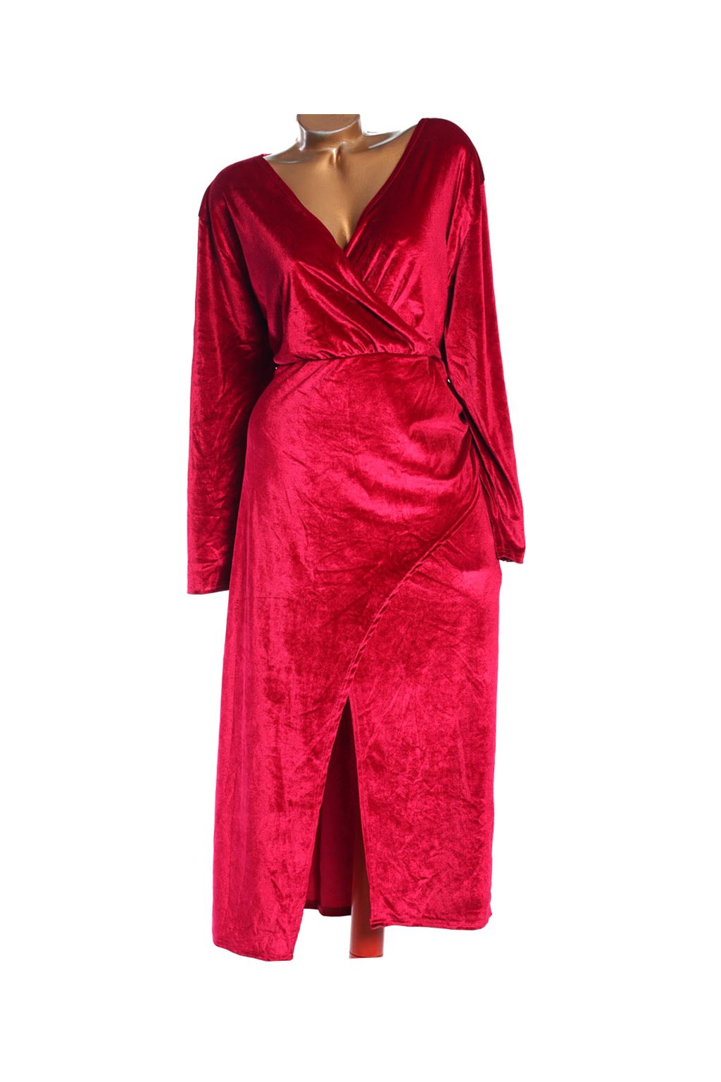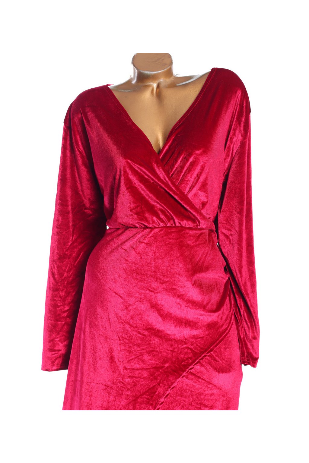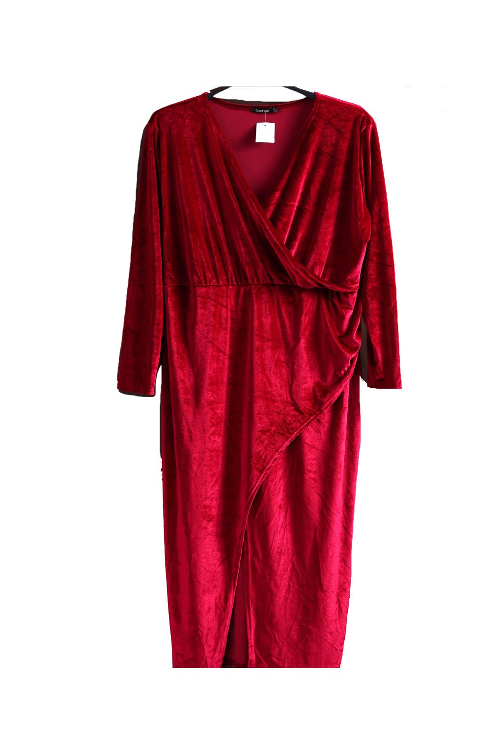 Dámké rudé sametové elastické společenské šaty / BOOHOO/ XXXXL (48/50/52) / NA ŠTÍTKU UK 24 / ANGLIE