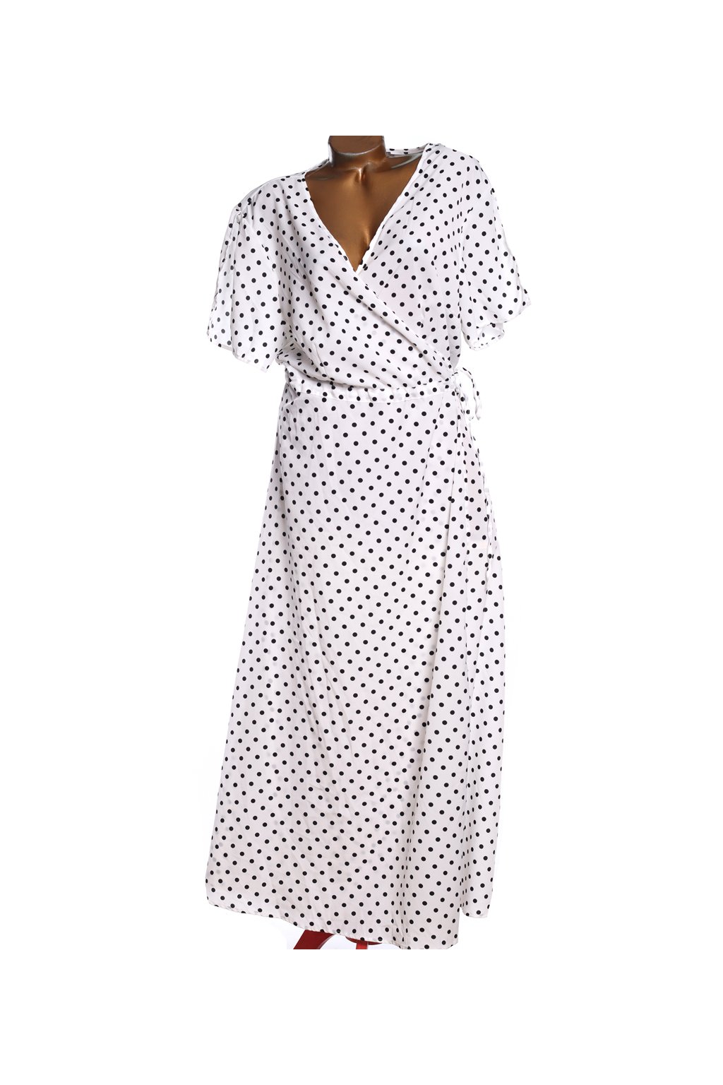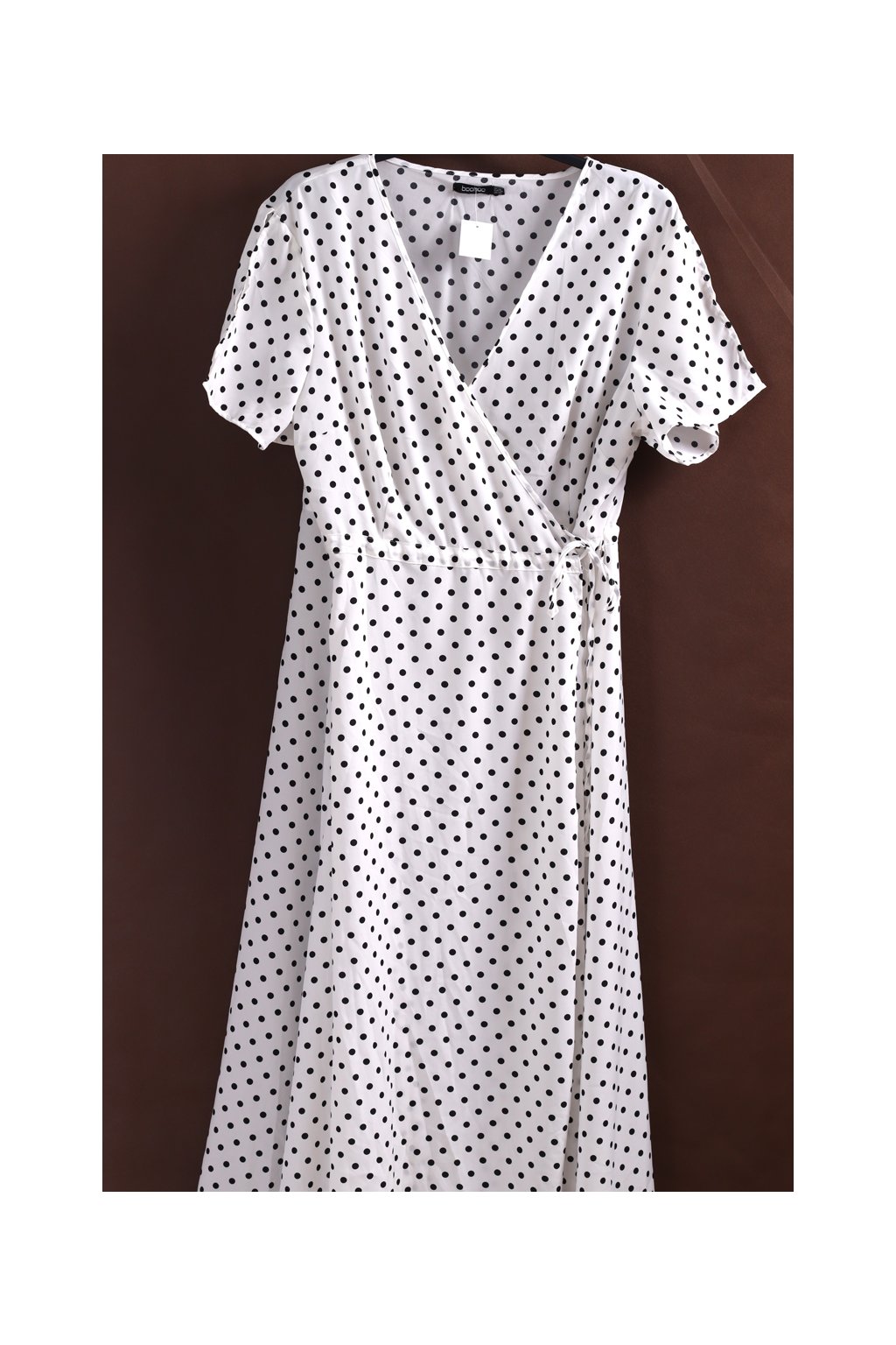 Dámské, lehké, bílé šaty s černými puntíky na zavazování / Boohoo / XXXXL (54) / UK 26 / ANGLIE