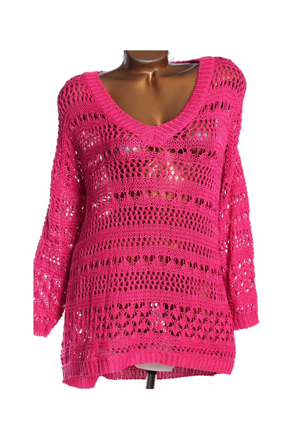 Dámký dírkatý růžový svetr / Simply Be / XXXL (56/58) / UK 28/ 30/ ANGLIE