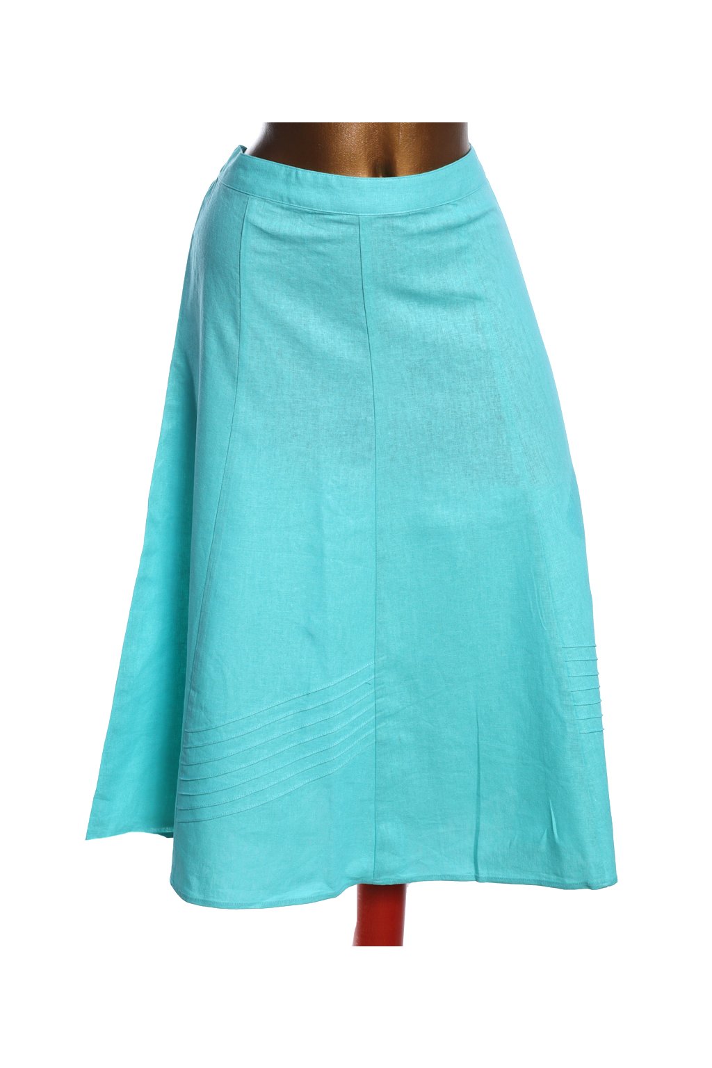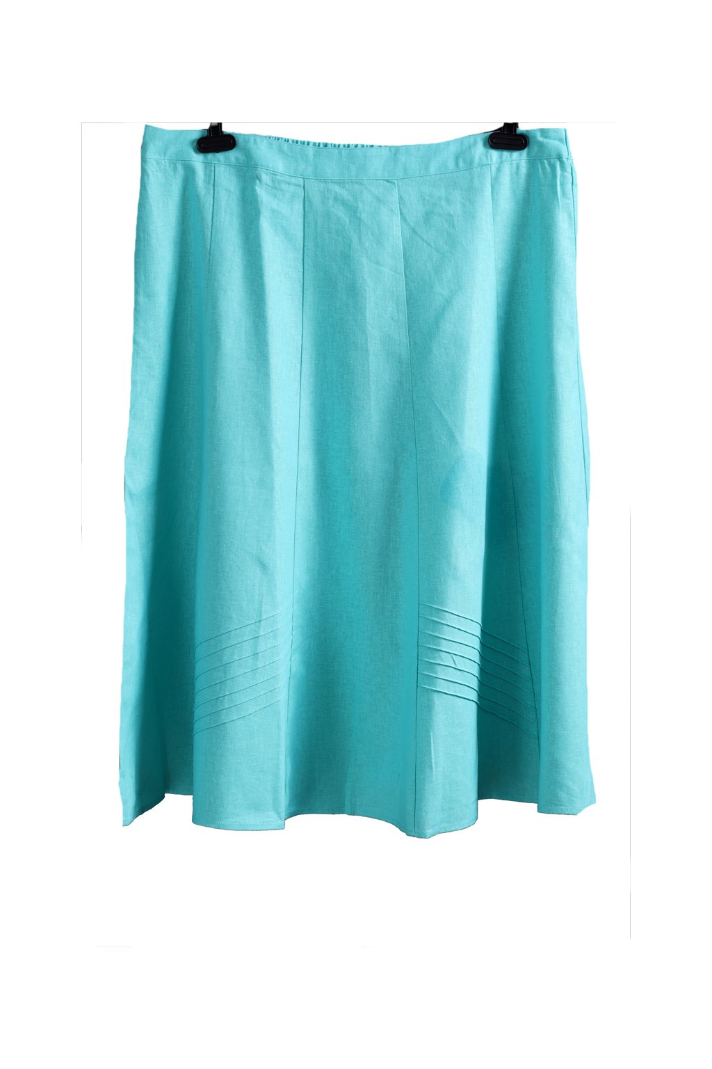Dámská modro/zelená tyrkysová lněná sukně /DAMART / XXXXL (52) / UK 24 / ANGLIE