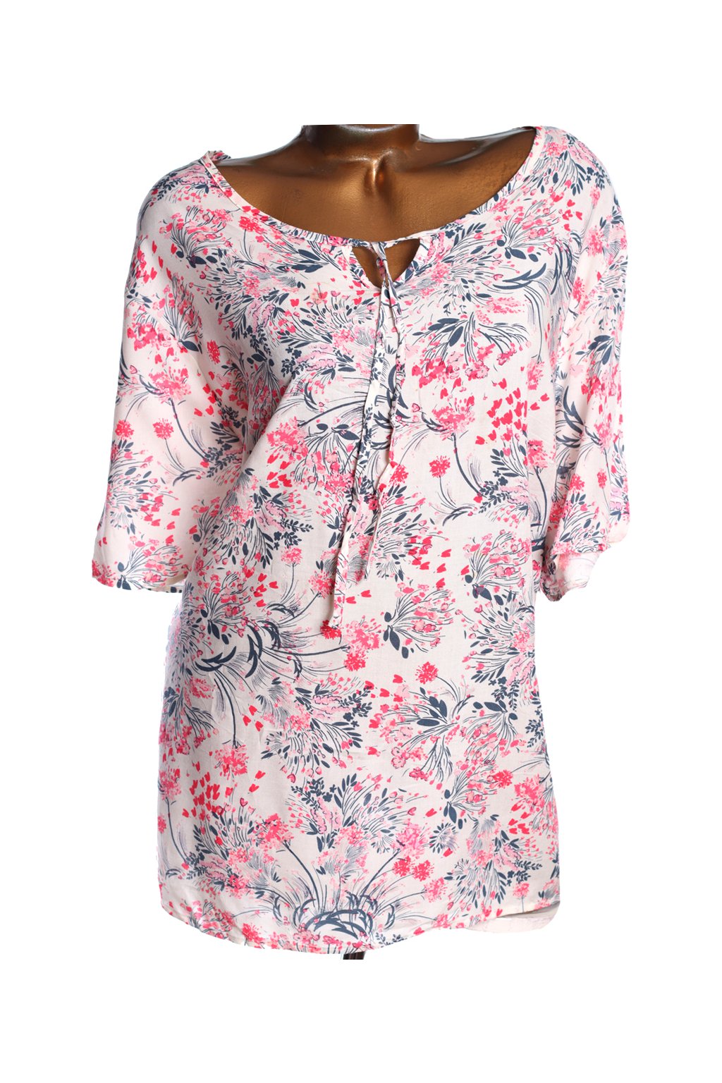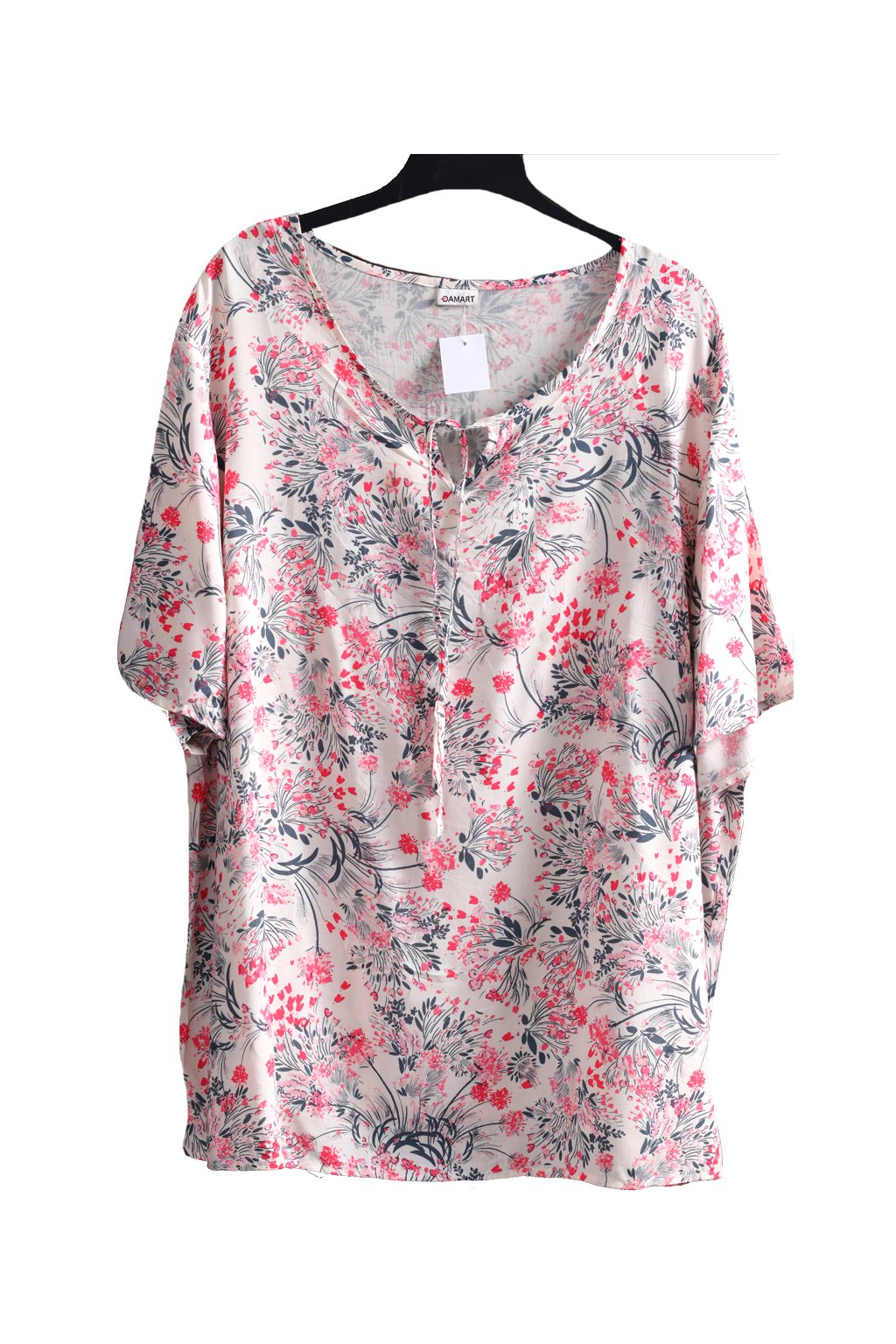 Dámská bílá halenka s růžovo-šedými květy / DAMART / XXXXL (54) / UK 26 / ANGLIE