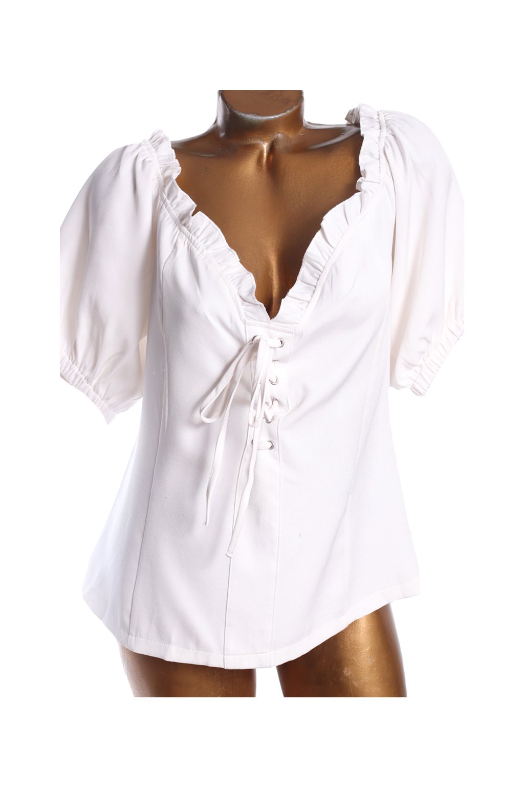 Dámská bílá halenka s volány a šněrováním / BOOHOO / XXXL (48) / UK 20 / ANGLIE