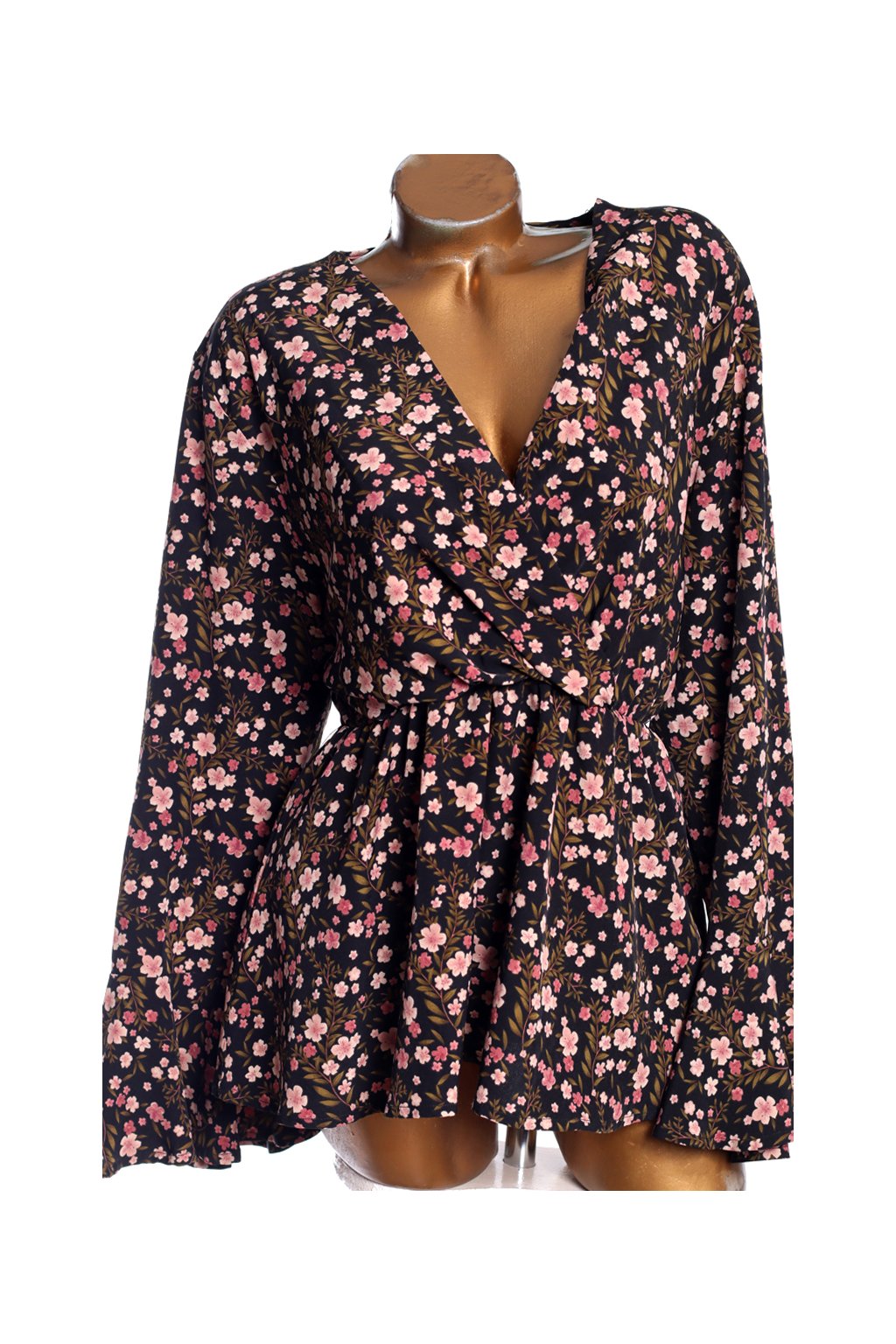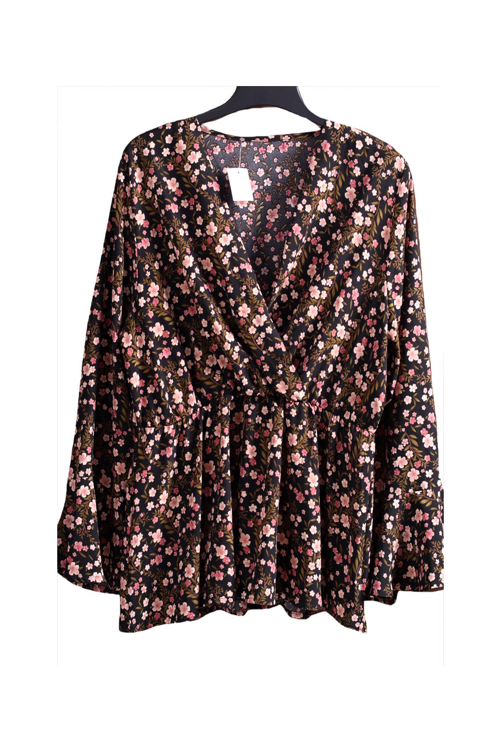 Dámská černá halenka s růžovými květy / XXXL (50) / UK 22 / ANGLIE