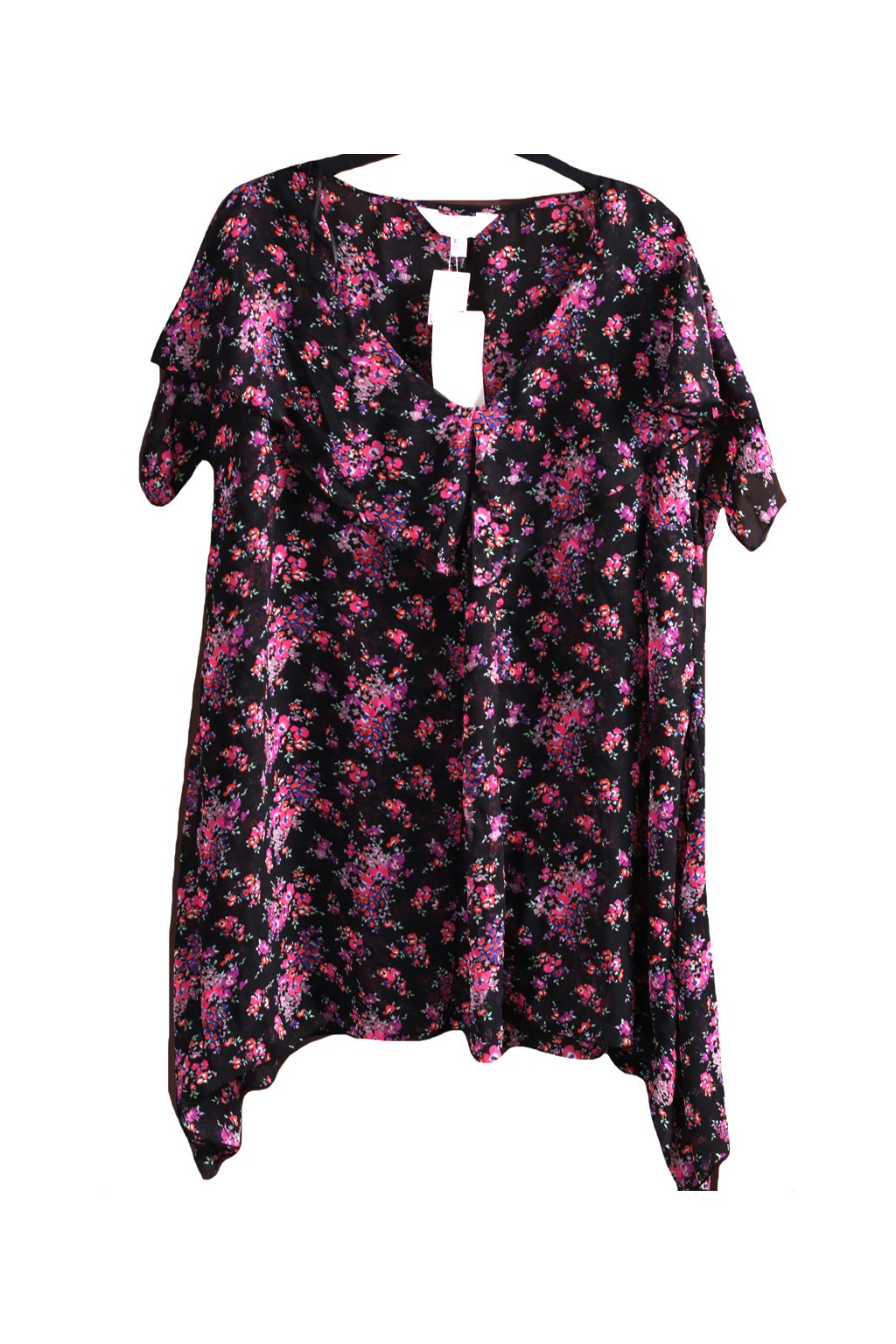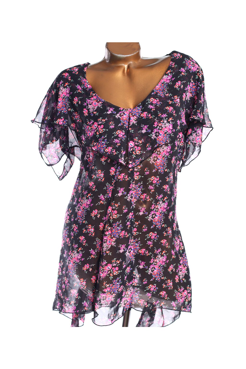 Dámská černá průsvitná halenka s barevnými květinovými vzory / YOURS / XXXL (50/52) / UK 22 / 24 / ANGLIE