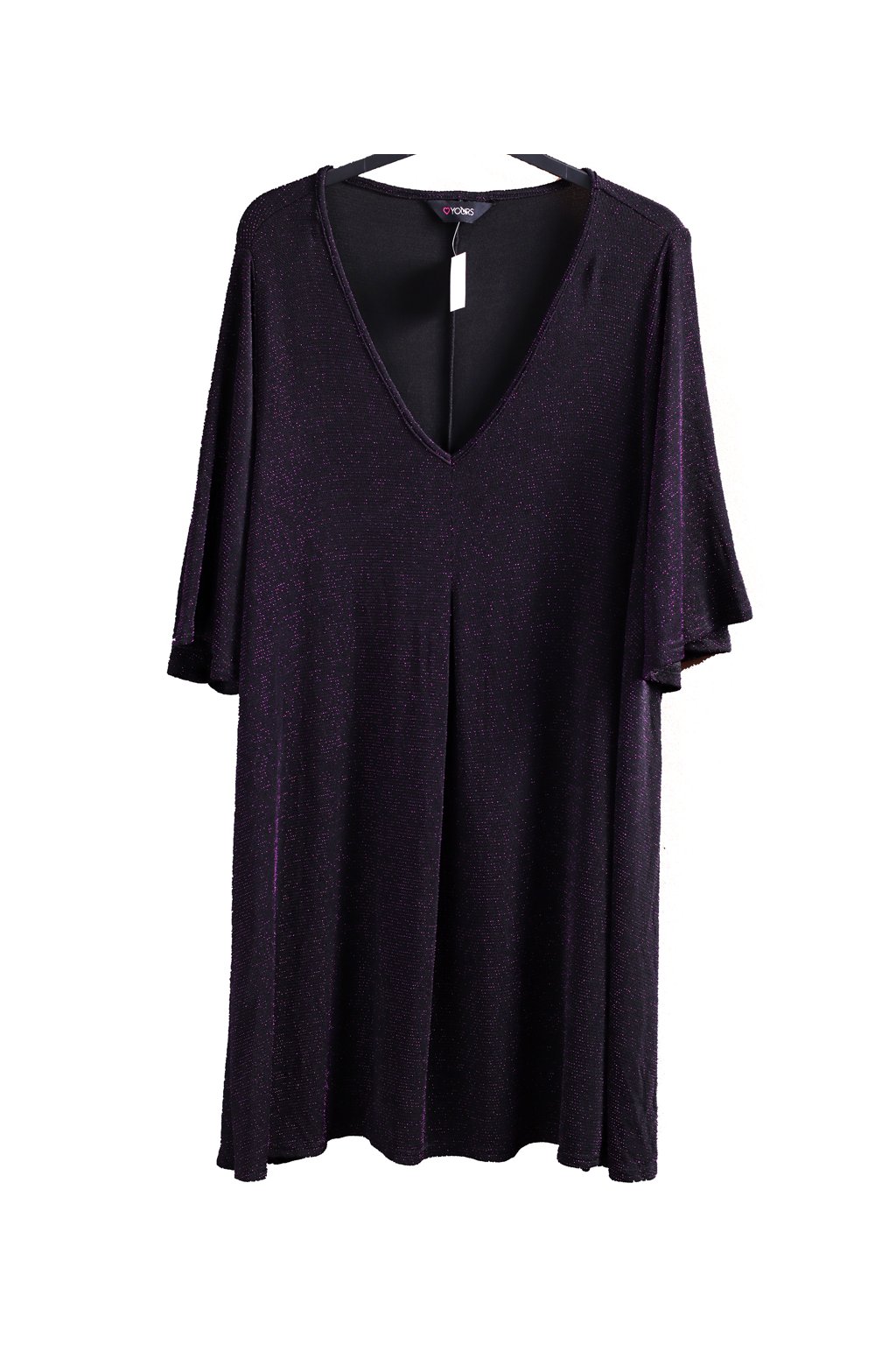 Dámská černá tunika s fialovými třpytkami / YOURS / XXXL (50/52) / UK 22/24 / ANGLIE