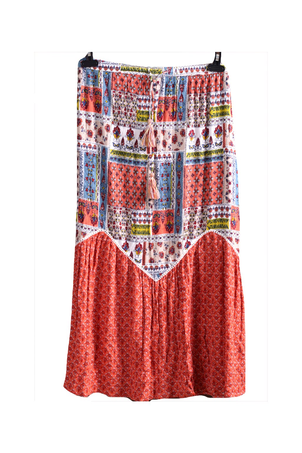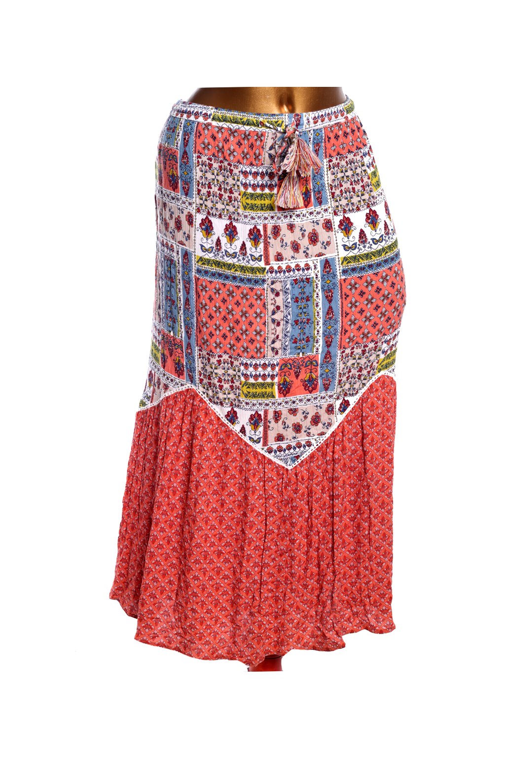 Dámská modro-bílo-cihlová barevně vzorovaná sukně - pas an gumu / TU / XXXL (48/50) / UK 22 / ANGLIE
