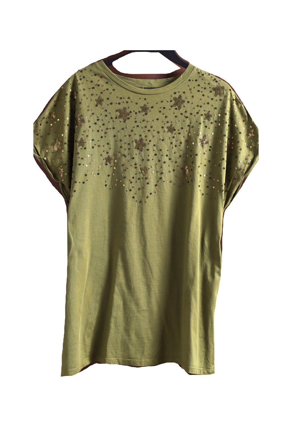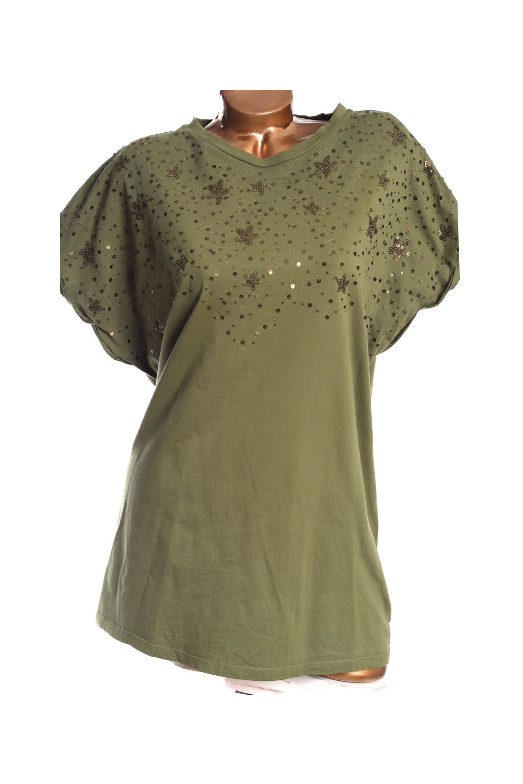 Dámská zelená halenka s flitry a hvězdami / XXXL (50) / UK 22 / ANGLIE