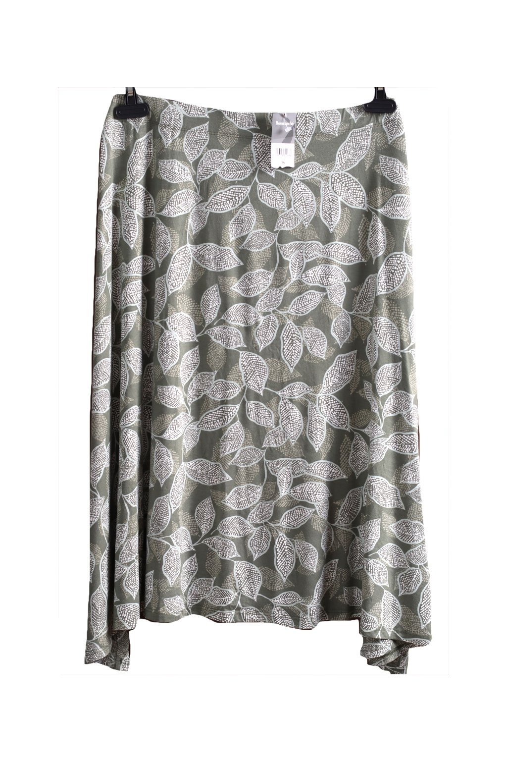 Dámská zelená sukně s bílými listovými motivy / BONMARCHÉ / (52) / UK 24 / ANGLIE