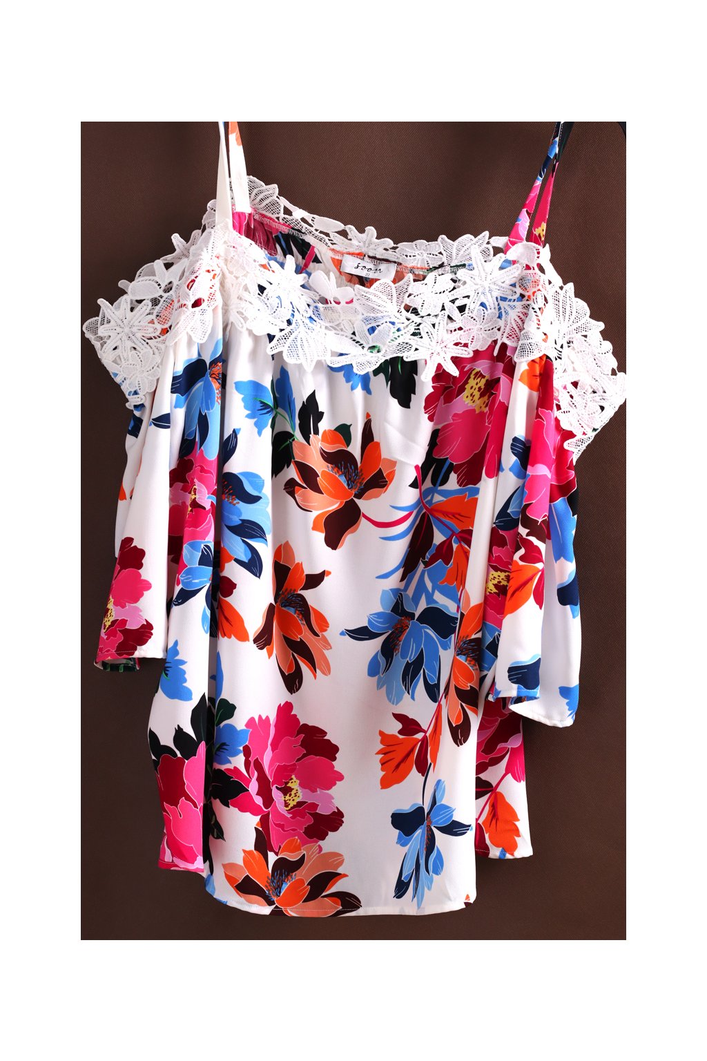 Dámská barevná halenka s krajkou u krku / SOON / XXXL (50) / UK 22 / ANGLIE