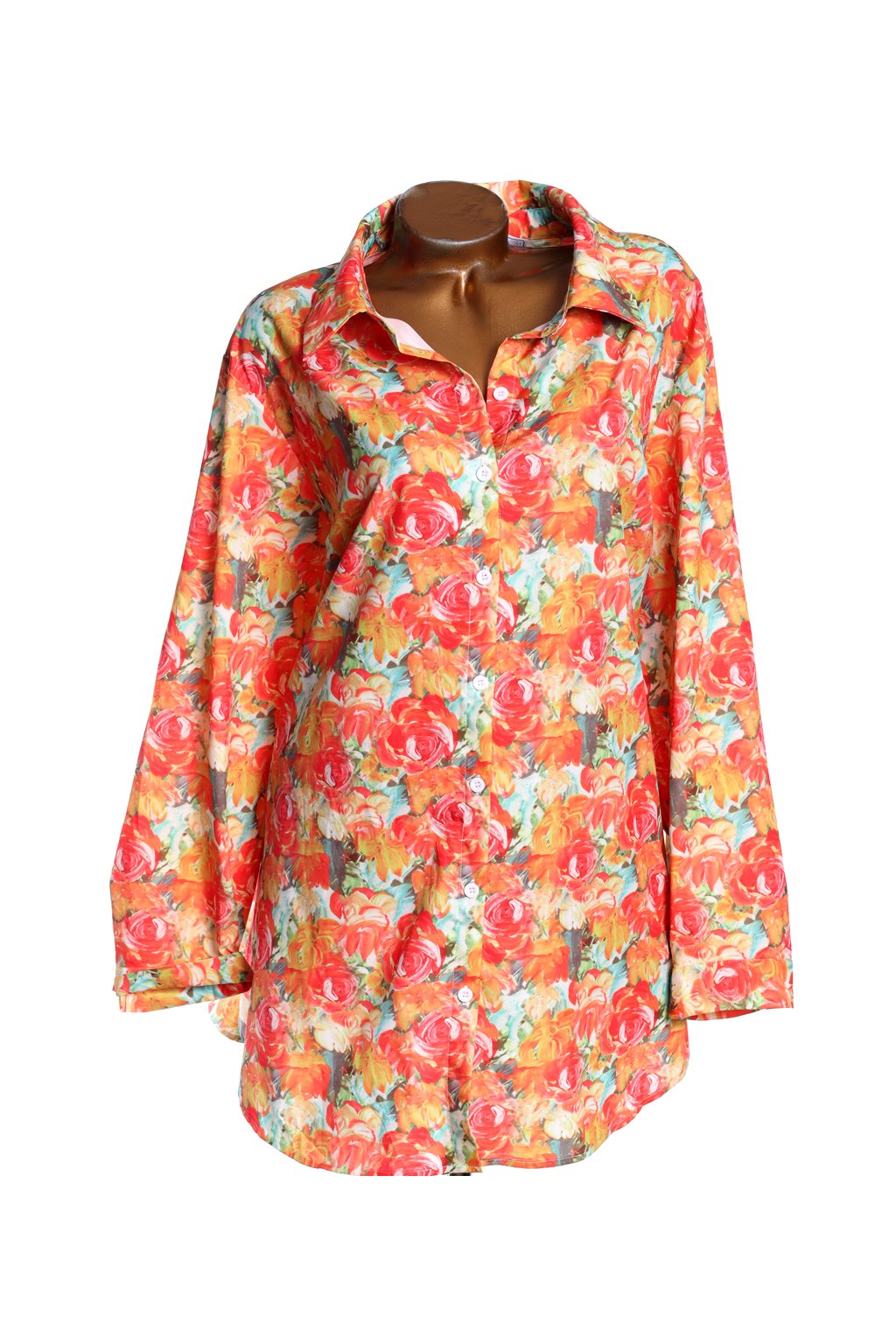 Dámská barevná květovaná košile - materiál polyester/ JORESS CURVE / (52/54) / UK 24-26 / ANGLIE