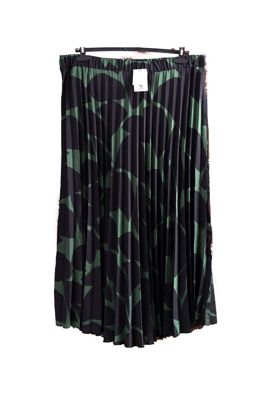 Dámská jarní, plisovaná zeleno-černá sukně se vzorem / Tu / XXXL (50) / ANGLIE 22