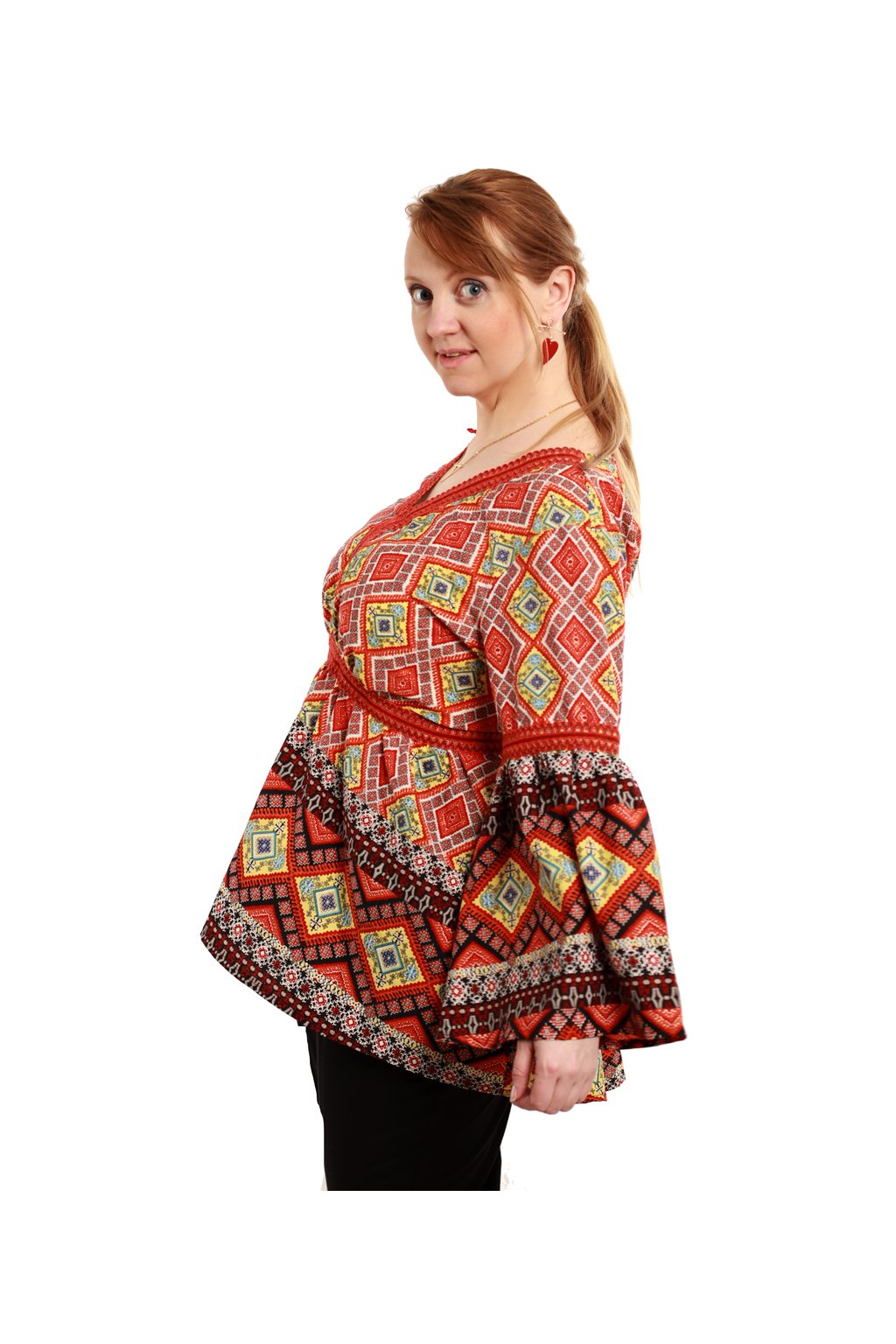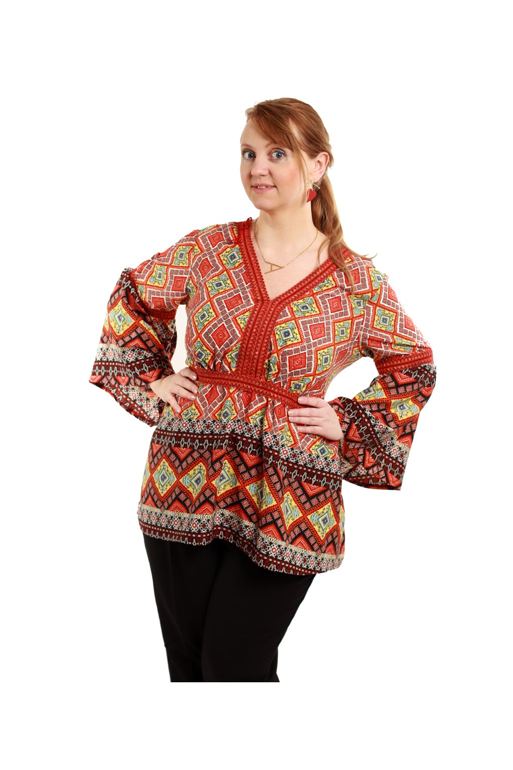 Dámská barevná vzorovaná halenka / KLASS - v pase do gumy, neelastická.