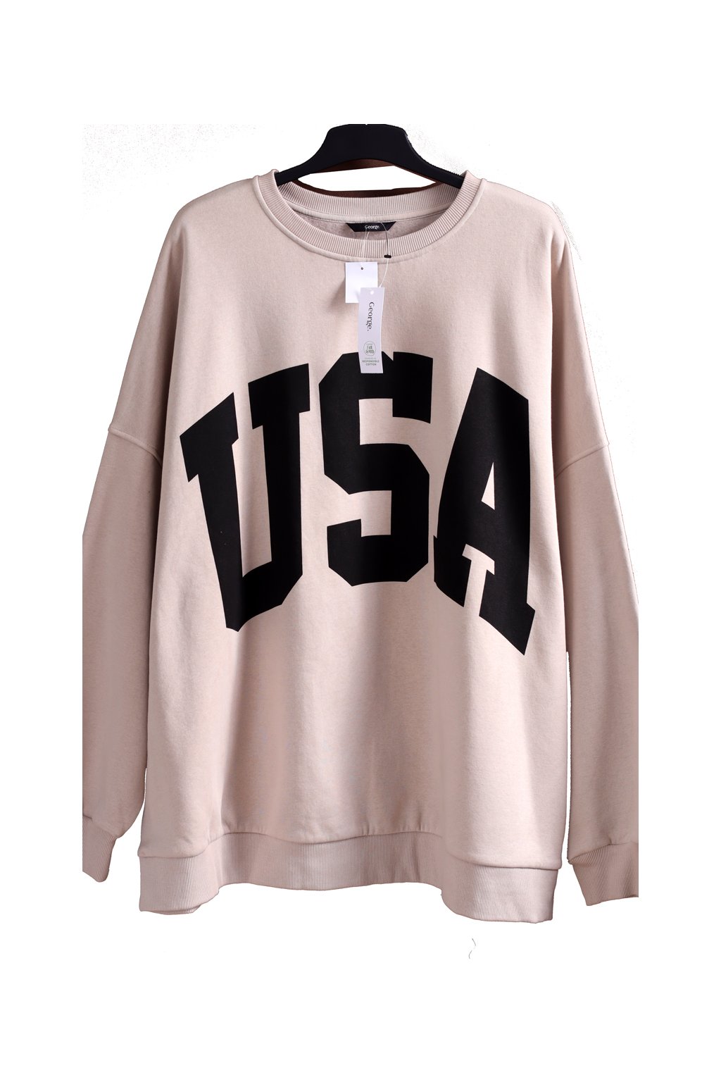 Dámská béžová mikina s černým nápisem USA / GEORGE / XXXXL (52/54) / UK 24/26 / ANGLIE