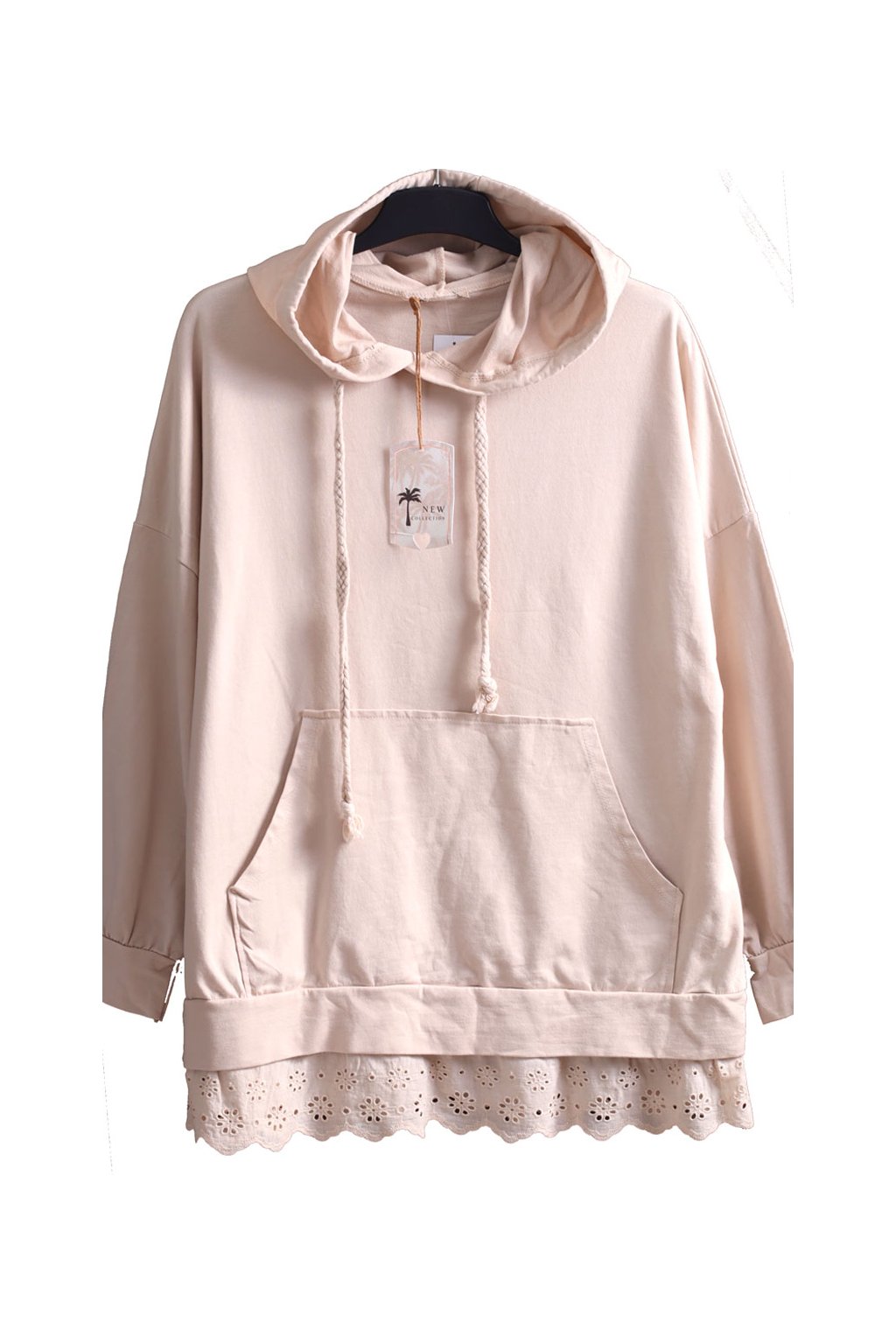 Dámská béžová mikina s krajkou a s kapucí / XXXXL (52) / UK 24/ ANGLIE