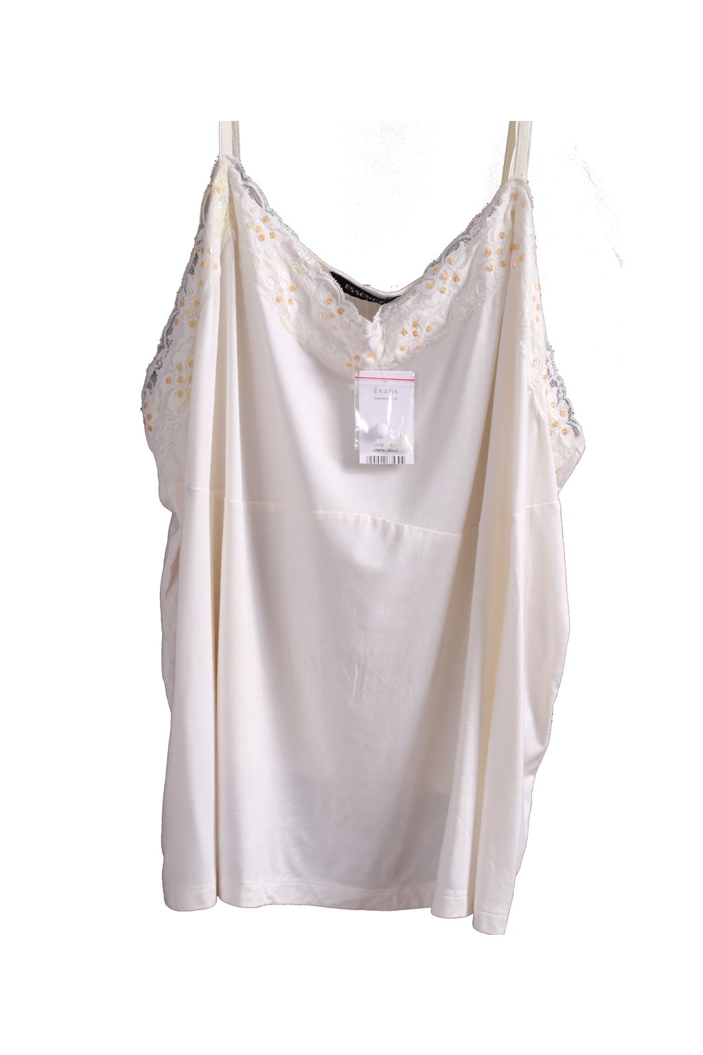 Dámská tílková bílá halenka s krajkou a flitry u dekoltu / ESSENCE / XXXXL+ (58) / UK 30 / ANGLIE