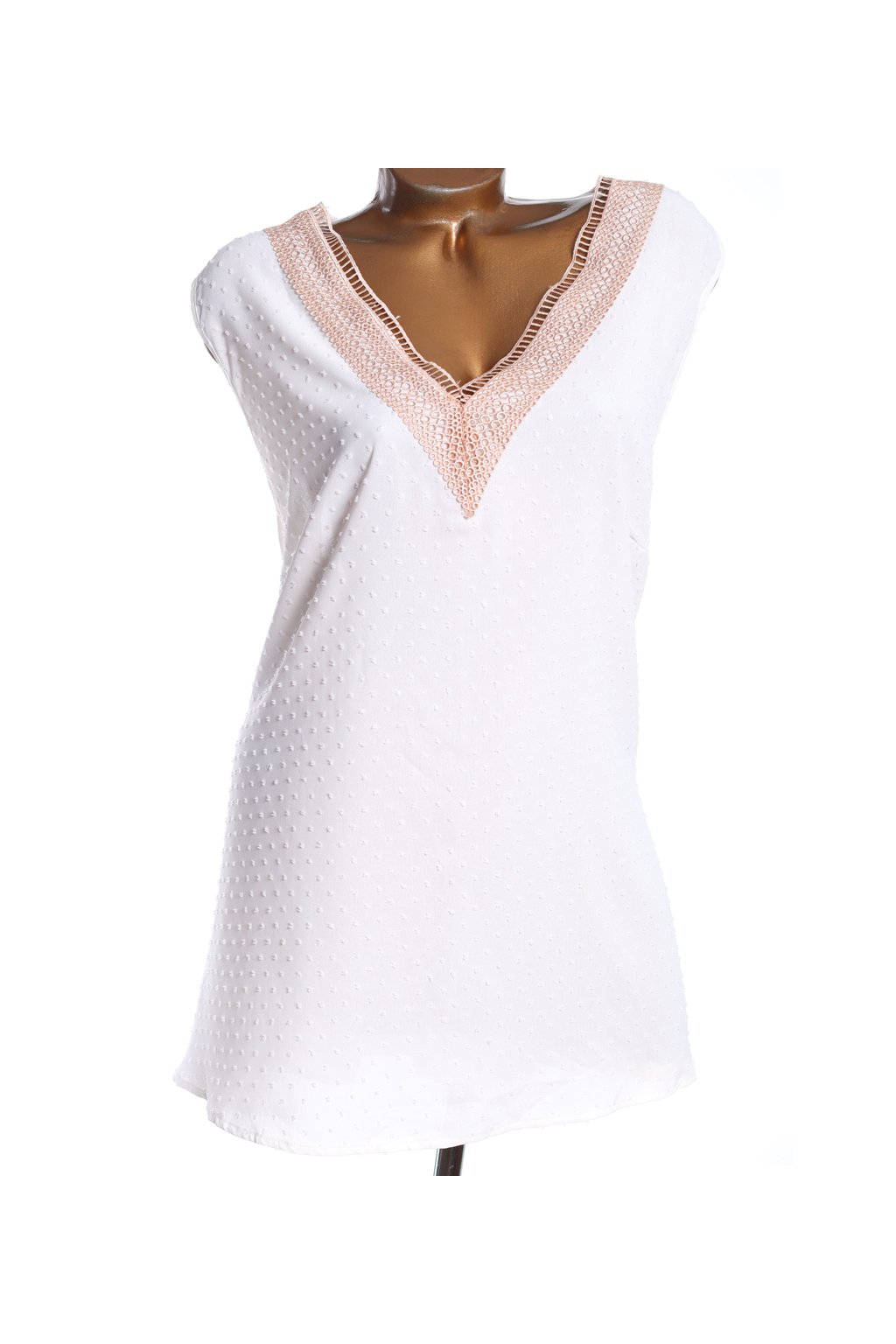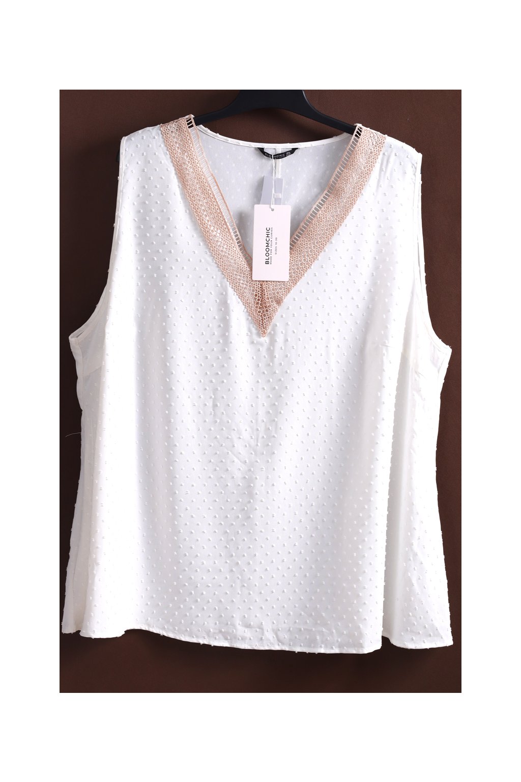 Dámská bílá halenka s krajkovým výstřihem / BLOOMCHIC / XXXXL+ (56) / UK 30 / ANGLIE