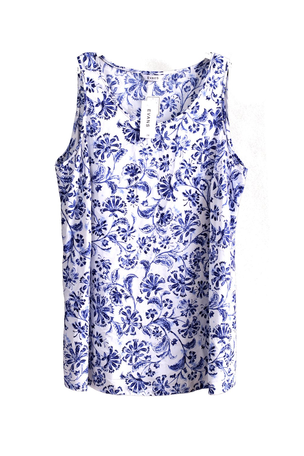 Dámská bílá halenka s modrými květy / Evans / XXXXL (52) / UK 24/ ANGLIE
