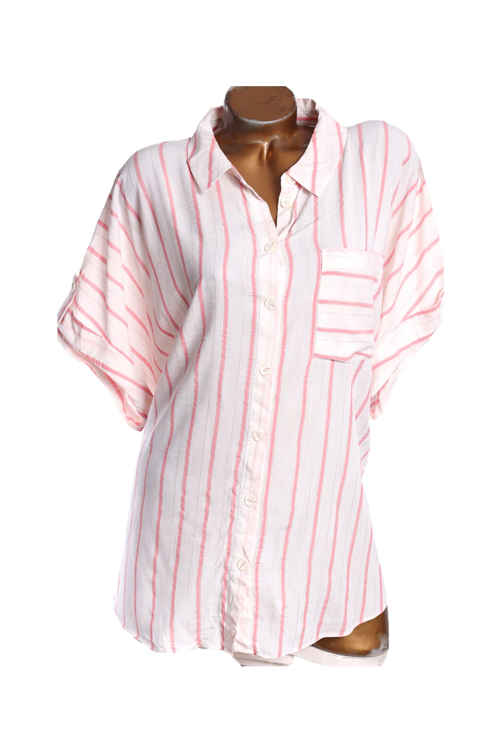 Dámská bílá košile s červenými pruhy a zlatkou nitkou / PAPAYA / XXXXL (52) / UK 24 / ANGLIE