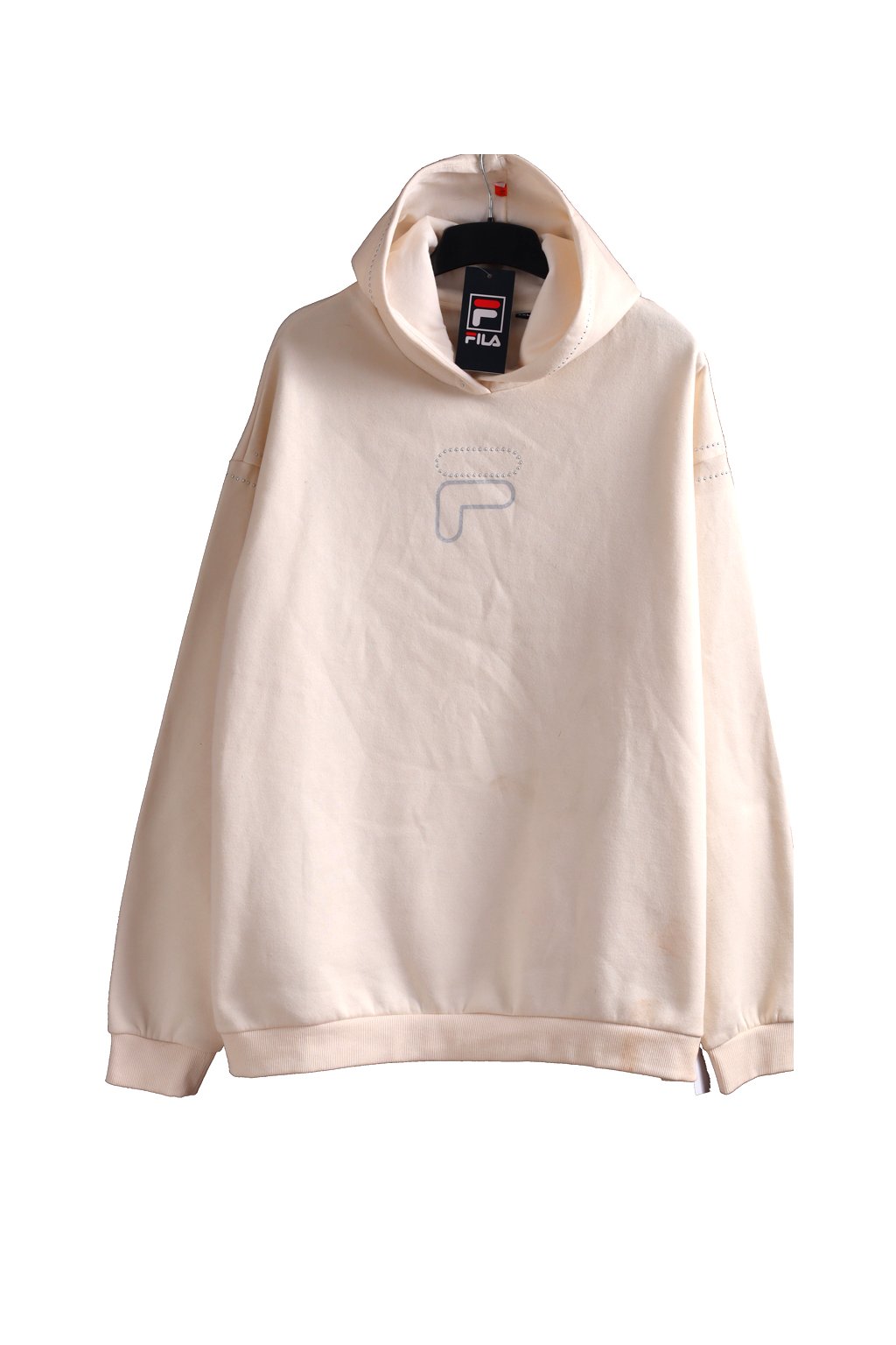 Dámská bílá krémová mikina s kapucí a kamínky / FILA / XXXXL (54/56) / UK 26/28 / ANGLIE