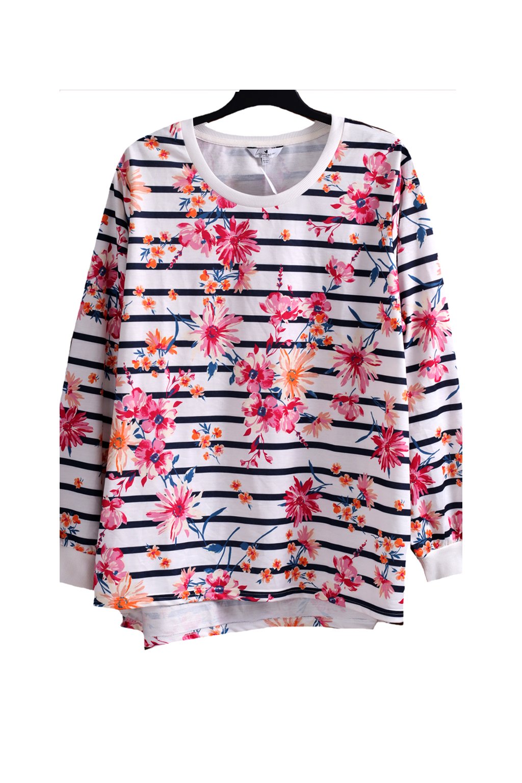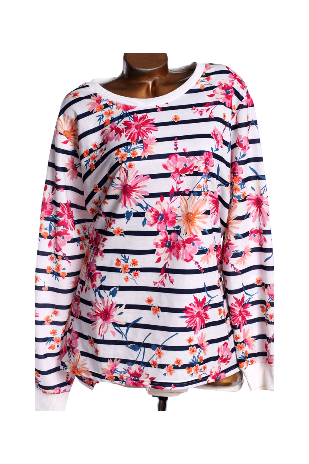 Dámská bílá mikina s modrými proužky s květy / Leisurewear / XXXXL (58/60+) UK 30/32 / ANGLIE