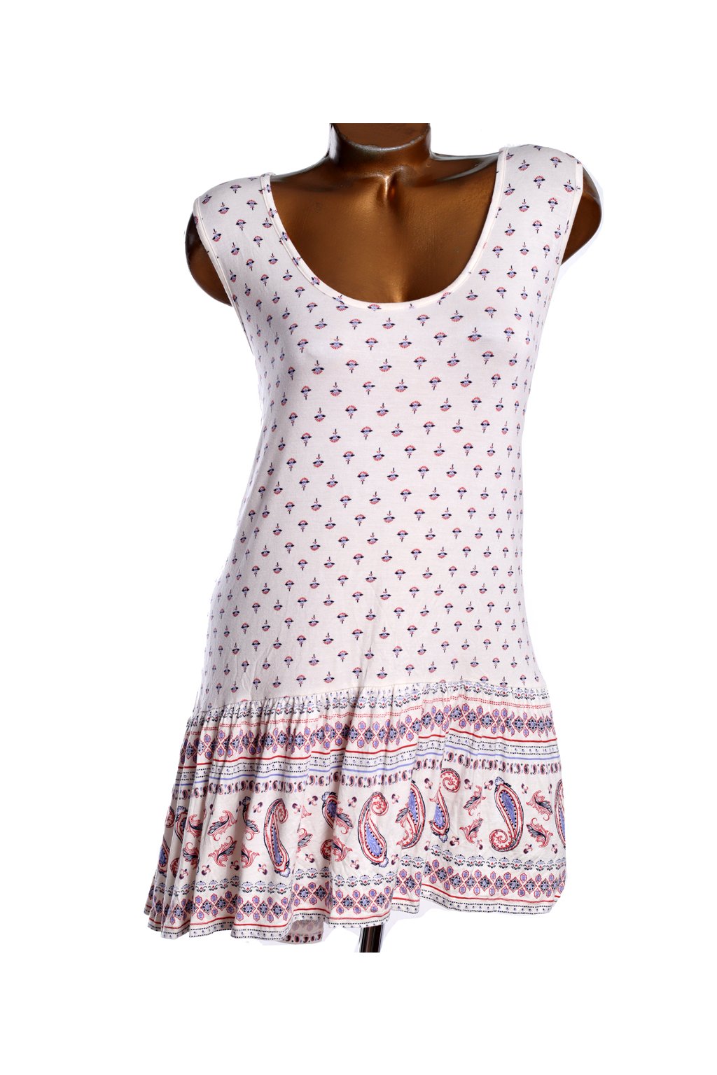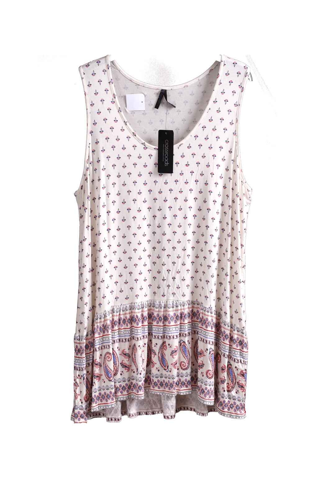 Dámská bílá tunika s modro-červenými vzory / CROSSROADS / XXXL (50/52+) / UK 22/ ANGLIE