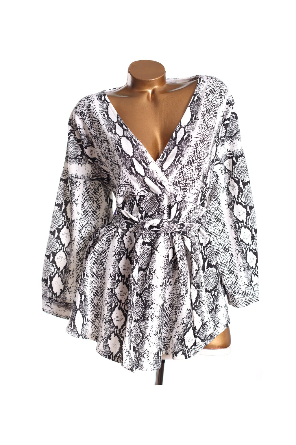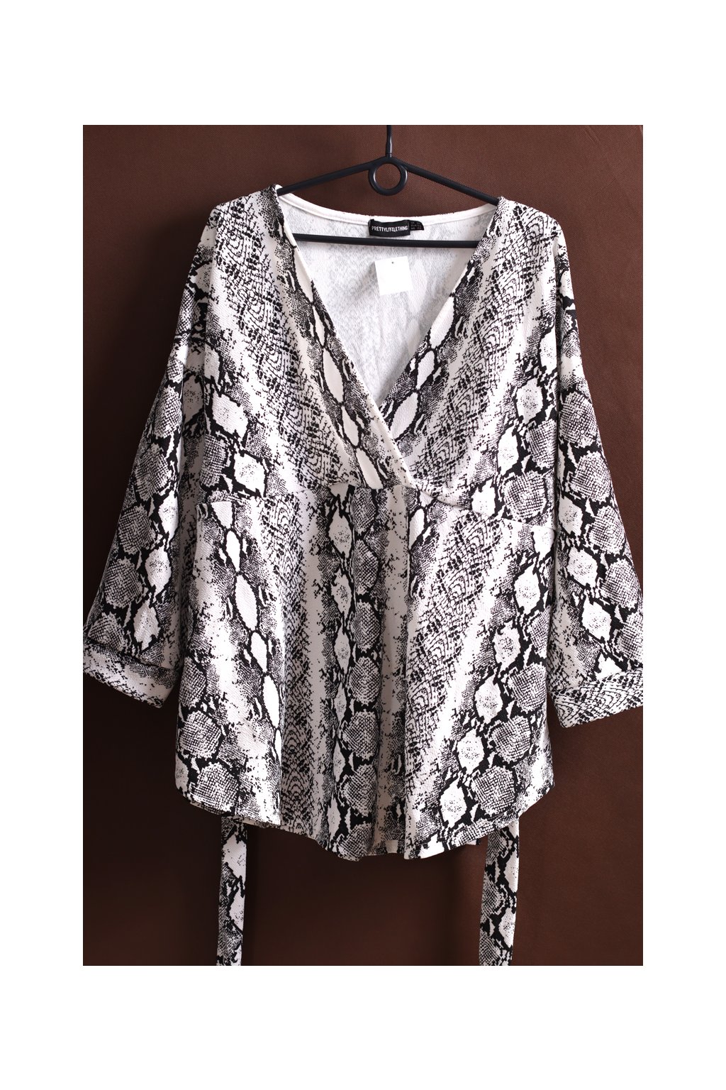 Dámská bílo-černá elastická halenka / s hadím vzorem / Pretty Little Thing / XXXXL (54) / ANGLIE