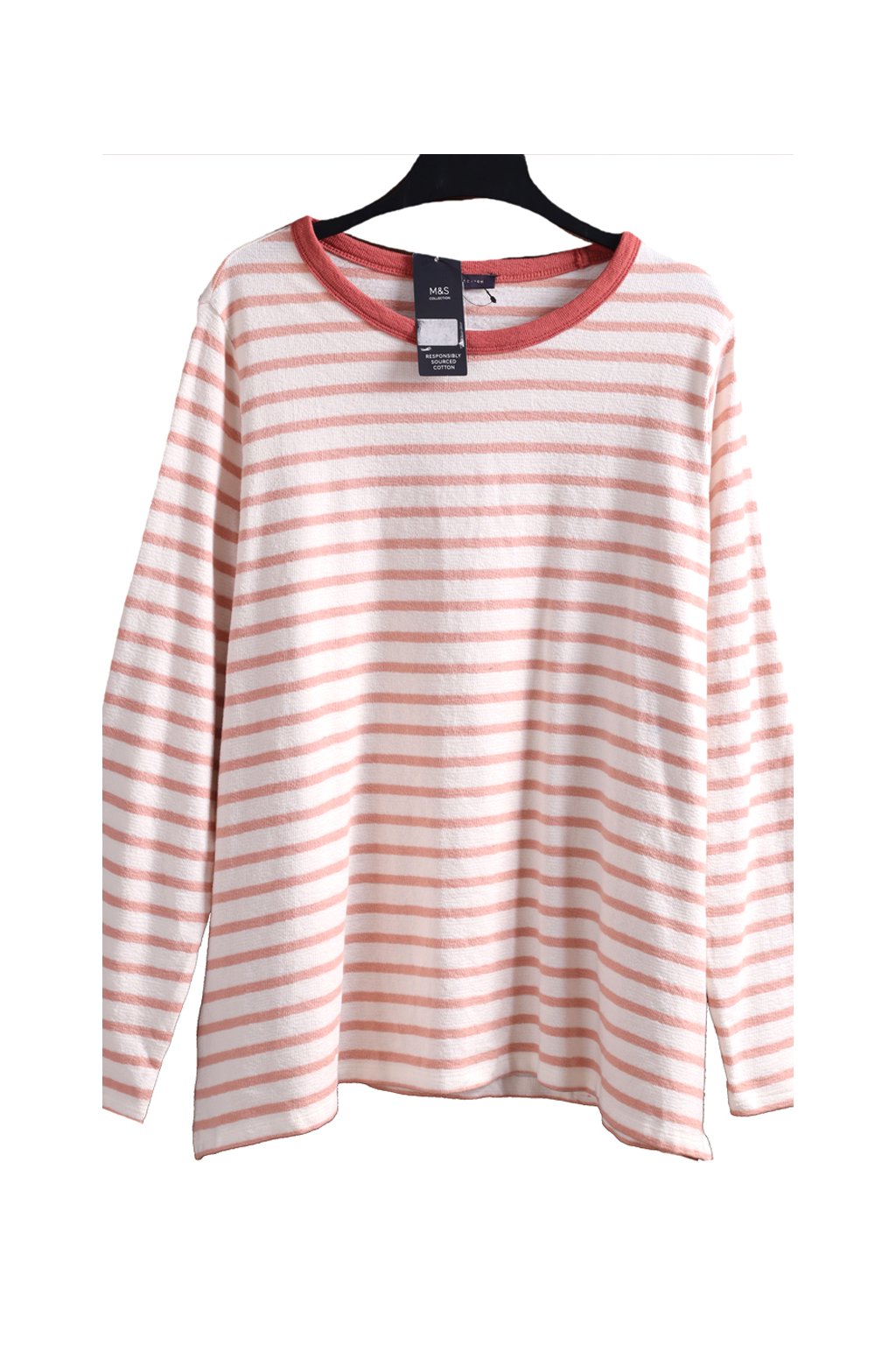 Dámská bílo-hnědá pruhovaná svetrová halenka / Marks & Spencer / XXXXL (50) / UK 22 / ANGLIE