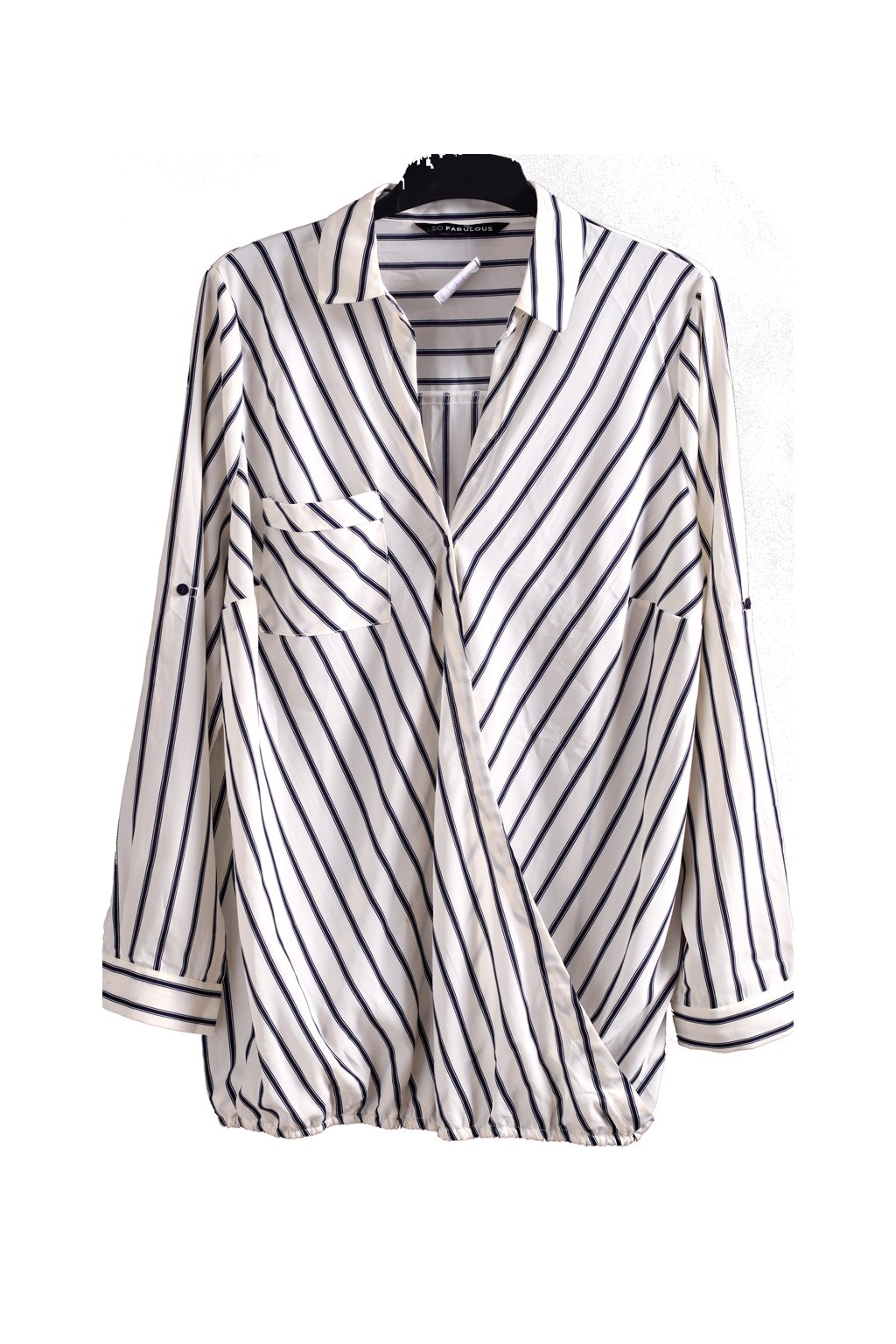 Dámská bílo-modrá pruhovaná košilová halenka / SO FABULOUS/ XXXL (50) / UK 22 / ANGLIE